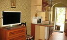 Если Вы желаете снять номер с отличными условиями, но при этом планируете сэкономить, рекомендуем Вам обратить внимание на двухместные апартаменты полулюкс комфорт с кухней нашего гостевого дома. Каждый из таких номеров состоит из: Просторной комнаты (16м2, с мягкой мебелью, двуспальной кроватью, столиком, пуфами, креслом-кроватью, спутниковым ТВ(плазма 32 дюйма), кондиционером, доступ к интернету WiFi). Оборудованной кухни (с холодильником, микроволновой печью, электроплитой, необходимым набором посуды). Стандартным санузлом (с душем, умывальником и туалетом). Вместительным балконом (со столиком и стульями). Каждый из таких номеров, рассчитанных на размещение 2 взрослых гостей и 1 ребенка(до 10 лет), отличается уникальным интерьером и привлекает уютной атмосферой. Он отлично подойдет для комфортного отдыха, т.к. после жаркого солнца позволит подышать прохладным кондиционированным воздухом, подарит возможность насладиться любимым фильмом или телепередачей, а если Вы путешествуете с ребенком - приготовить домашнюю пищу для малыша. В стоимость входят: проживание, пользование услугами пляжа, доступ в интернет. Смена белья: каждые 5-6 дней Питание: От комплексного до шведского стола, в расположенных неподалеку столовых, оплачивается отдельно. Возможен заказ комплексного 3-разового питания, или завтрака, обеда или ужина в отдельности. Благодаря наличию оборудованной кухни, имеется возможность готовить самостоятельно. Питание мы организуем по вашему прибытию, вы сами выберите какое Вам подойдет, по цене, качеству и т.д. Рядом десяток кафе-баров, которые готовят по меню "Домашняя кухня", продуктовые магазины, рынок и т.д. Вода: горячая – круглосуточно гелио и бойлер. Инфраструктура: у пансионата имеется собственный пляж (песочный, мелко-галечный, оборудованный специальными навесами и летним душем); неподалеку располагаются магазины и местный фруктовый рынок, кафе, бары, танцплощадка; имеется возможность получения качественных медицинских услуг, массажа, туристических услуг (приобретение и заказ билетов на экскурсии, пешие и морские туристические прогулки, бронирование авиа и ж/д билетов). Пляж: чистый, мелко-галечный, расположенный всего в 150м от территории пансионата, самый протяженный и широкий на побережье. ВНИМАНИЕ! Пансионат "Орхидея" размещает гостей, на отдых, вместе со своими домашними питомцами, в данной категории номера. Правила и обязанности, читаем: Правила проживания с домашними питомцами в пансионате «ОРХИДЕЯ» Правила поселения: Расчетное время: 10-00 (выехать необходимо до 10-00) Заезд: с 12-00 (можно ранее, если имеется свободный убранный номер) Дети: принимаются без ограничений по возрасту.Спальные места