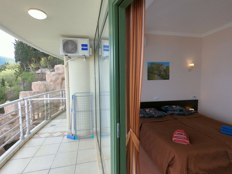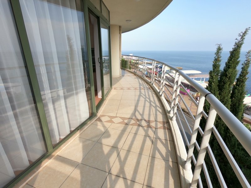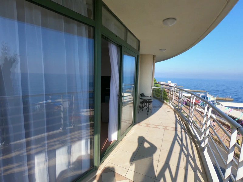 Апартаменты расположены на первой линии Черного моря по адресу: Россия, Крым, Алушта, Профессорский уголок, Набережная улица, 4А. Панорамный 3-х местный однокомнатный номер. От входа номер расширяется и переходит в панорамный эркер, выходящий на балкон, позволяющий насладиться видом на море в обе стороны. Номер очень светлый и воздушный, площадью 37 кв.м. Спальные места представлены двуспальной кроватью системы Twin (возможно разделить на 2 односпальные кровати) и раскладным диваном. Для гостей работает ресторан. Предусмотрены разные типы питания: полный пансион и полупансион. Бесплатный Wi-Fi на территории поможет всегда оставаться на связи. Специально для автопутешественников организована бесплатная-общественная парковка. Для простоты передвижения возможна организация трансфера. Дополнительно: индивидуальная регистрация заезда и отъезда. В апартаментах: сейф, кондиционер, телевизор с кабельным тв, мини-бар. В ванной комнате: ванна, фен, биде, тапочки. Важная информация для гостей: При регистрации заезда необходимо предъявить действительное удостоверение личности с фотографией. Курение на всей территории запрещено. Размещение домашних животных не допускается. Нельзя проводить вечеринки/мероприятия. «Тихие часы» для гостей (когда нельзя шуметь): с 22:00 до 08:00. Ознакомиться с панорамой отеля (с квадрокоптера) по ссылке: https://youtu.be/nOe7crxAlNU . Ознакомиться с панорамой номера по ссылке: https://youtu.be/2W1_cs9C-bgВ номере