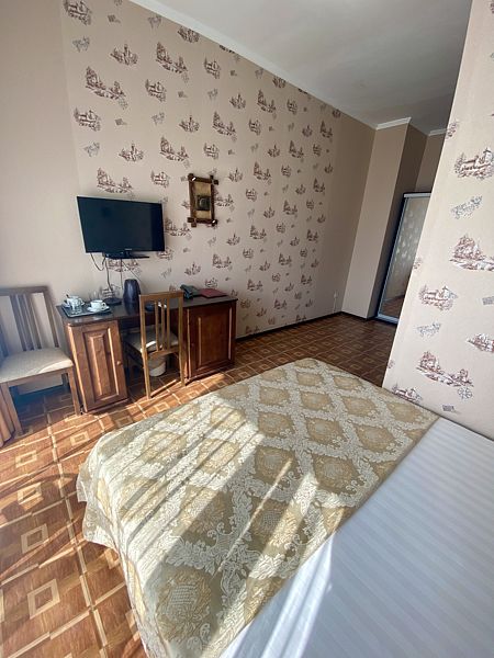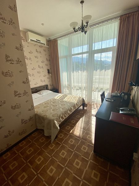 Просторный однокомнатный номер улучшенной планировки с большим балконом и видом на море. Площадь номера — 22 кв.м. В номере установлена система кондиционирования, есть сейф, шкаф/гардероб и балкон.
