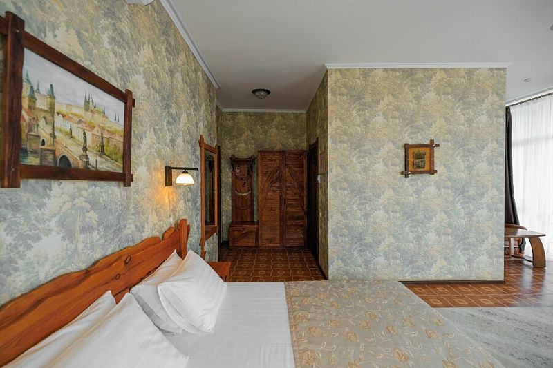 Доп. место — раскладывающийся диван. Вид из номера — на парк. Питание не входит в стоимость проживания.