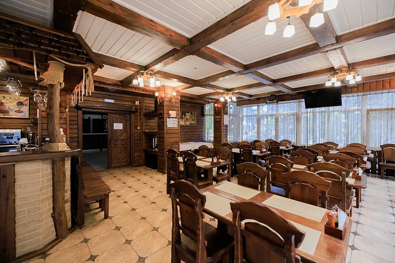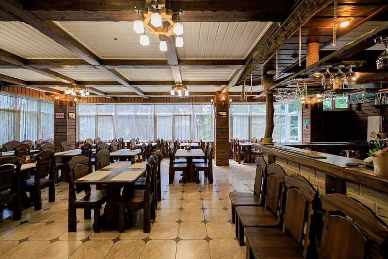 Ресторан парк-отеля с удовольствием ждет гостей, чтобы они насладились европейской кухней в уютной и дружелюбной обстановке. Каждое утро здесь подают завтрак в формате «комплексное меню», а также предлагаются обеды за 470 ₽ с человека, ужины за 370 ₽ с человека и дополнительные завтраки за 390 ₽ с человека.