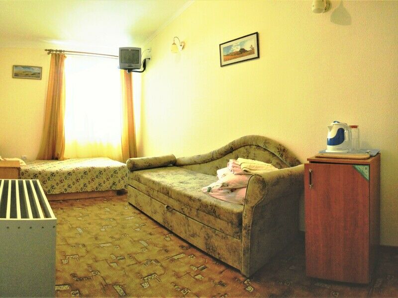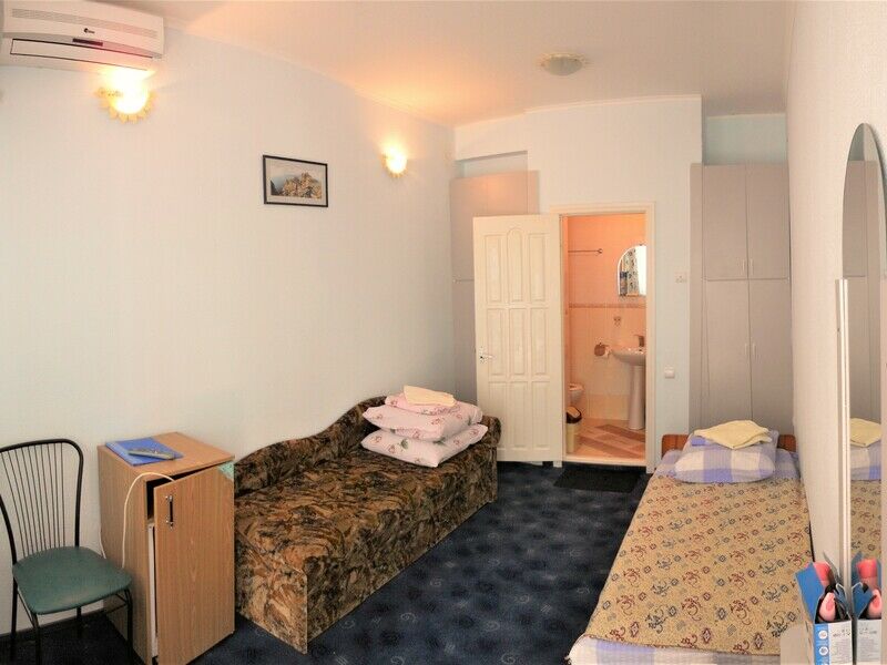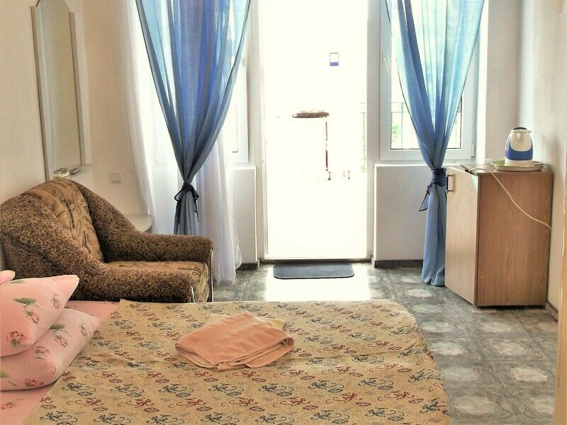 На небольшой, но благоустроенной территории гостевого дома разместились два четырехэтажных жилых корпуса без лифта. Отдыхающих ожидают однокомнатные и двухкомнатные номера разных категорий, оснащенные бытовой техникой, кондиционерами, санузлами с душевыми кабинами, мебельными гарнитурами. В каждом номере имеются обустроенный балкон или терраса.