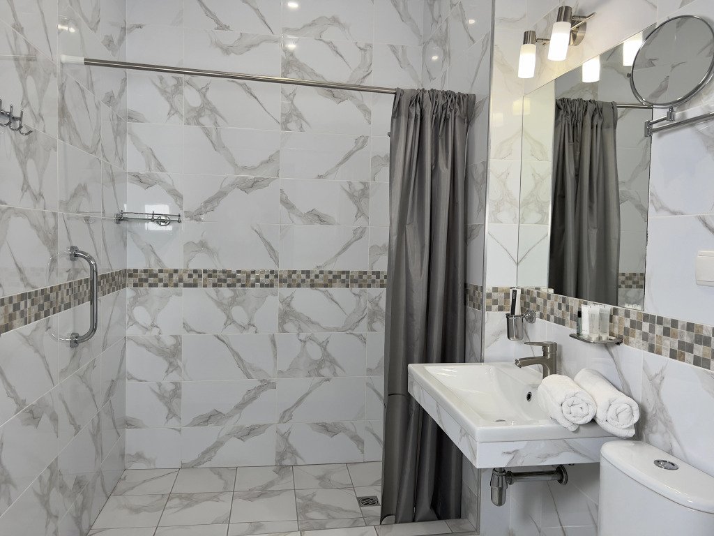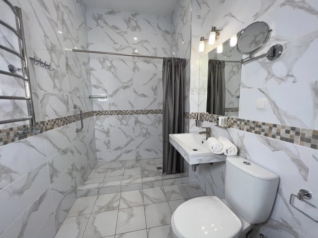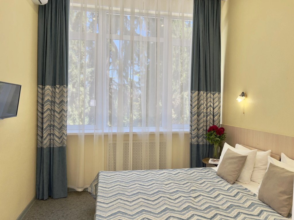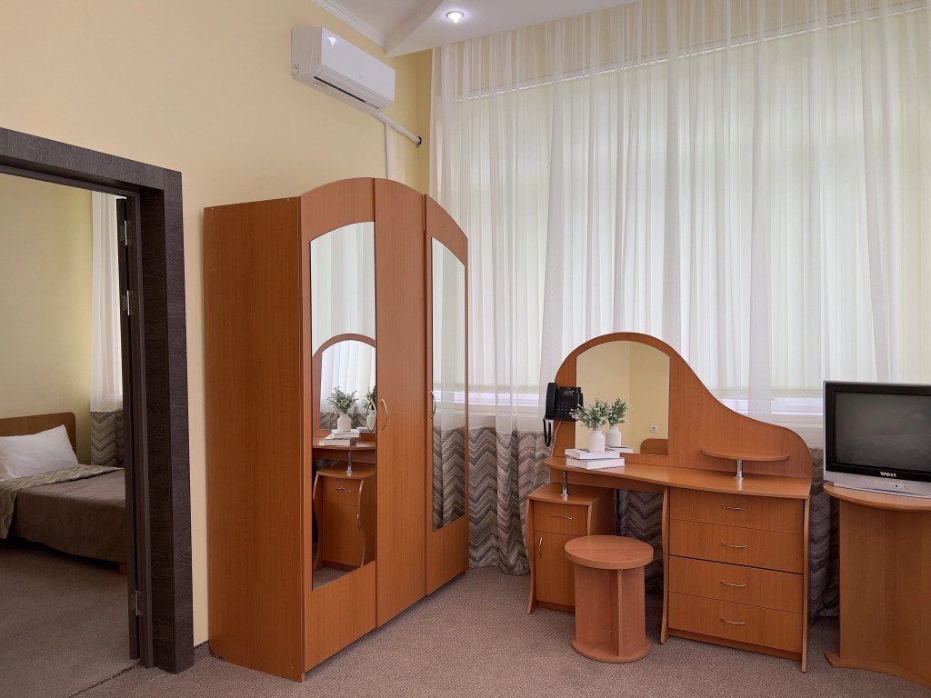 В номере вы найдёте телевизор и халат. Оснащение зависит от выбранной категории номера.