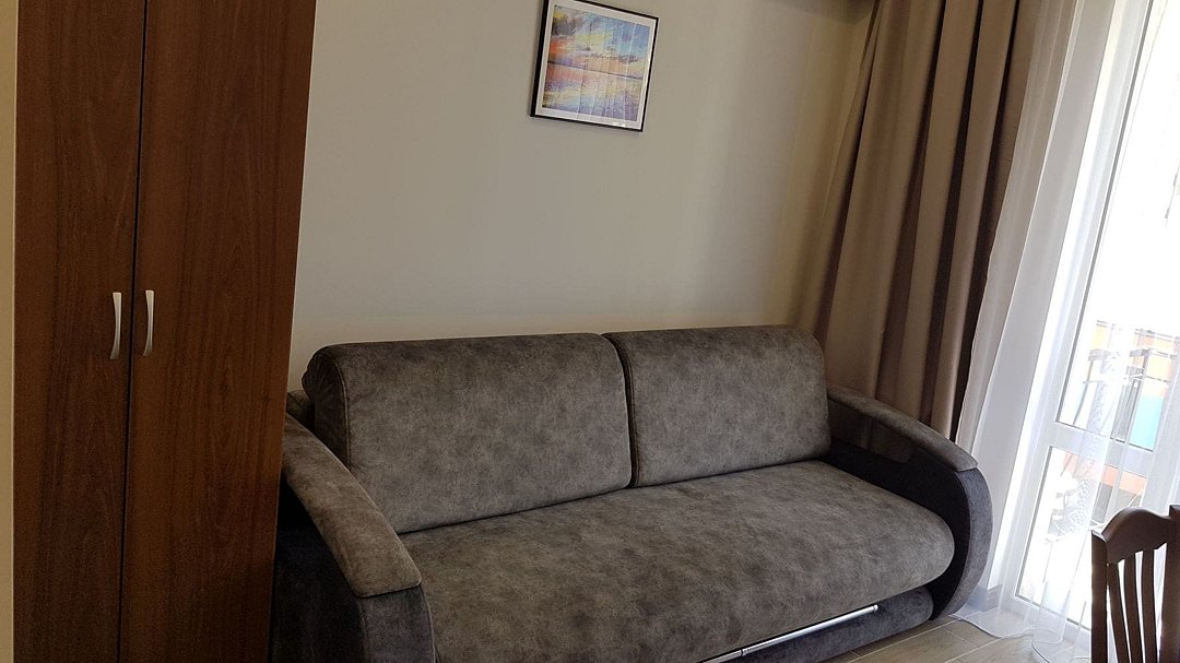 К вашим услугам: двуспальная кровать, кондиционер, телевизор, холодильник, чайник, набор посуды, тапочки.