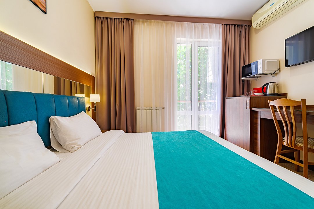 Гостям будут предложены различные категории номеров — от одноместных до четырёхместных с кухней. Номера оформлены в современном стиле, продуманном до мелочей и соответствующем международным стандартам. В каждой комнате есть современная мебель, ортопедические матрасы, кондиционер, холодильник, телевизор, душевая кабина, фен, гигиенические наборы и тапочки.