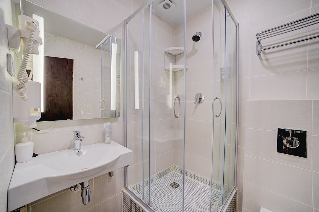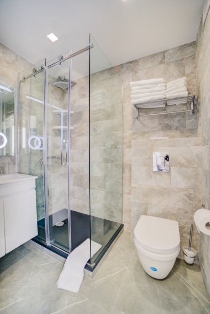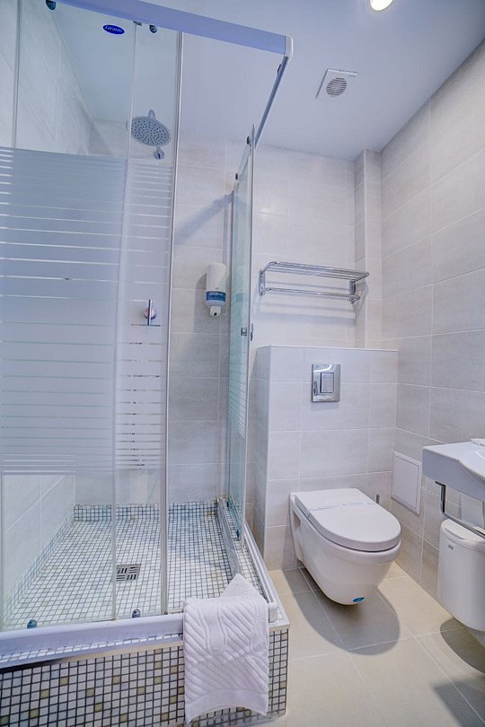 С/у с душевой кабинкой, гигиенические наборы, мыло, гель, шампунь.
