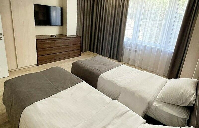 Стильные апартаменты рзместились в четырехэтажном здании в 40 метрах от моря. В каждом номере имеются 2 отдельные спальные комнаты с панорамными окнами, кухня-гостиная, оборудованная необходимой бытовой техникой, индивидуальный санузел и балкон с балюстрадой.