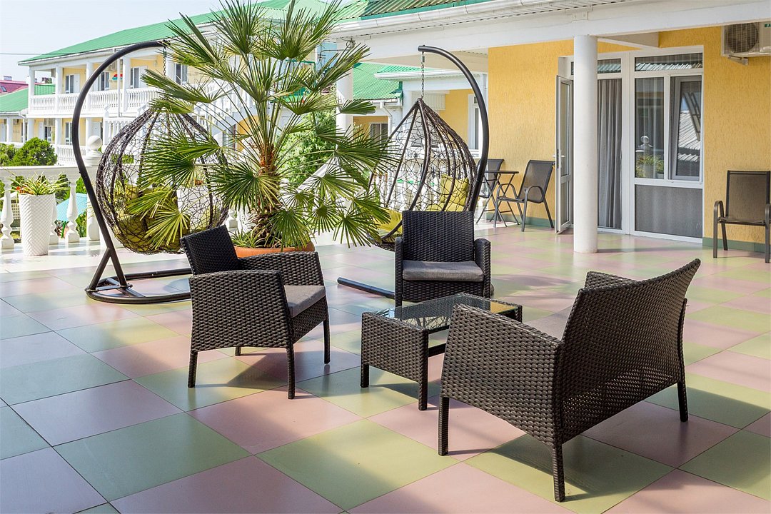 Номер "Комфорт" без балкона. Зона отдыха на общей террасе.Услуги и удобства