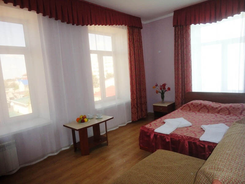 Гостевой дом может принять 120 гостей. Каждый номер современно оборудован и имеет индивидуальный санузел с душем. Возле корпуса гостевого дома имеется собственная парковка, а во дворе – зона отдыха, детские аттракционы и кафе с барной стойкой.