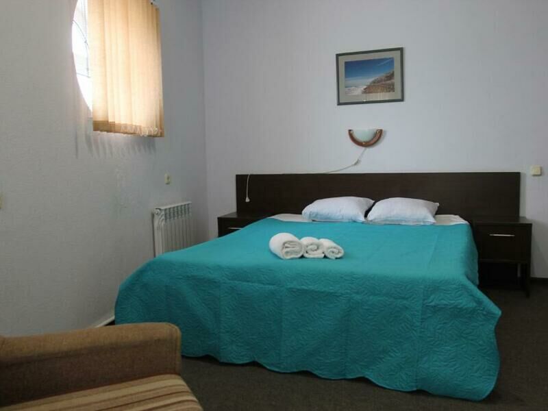Благоустроенная и озелененная территория отеля, на которой располагается небольшой бассейн, зона отдыха с лежаками, бар. В кафе-баре отеля гостям предлагают широкий выбор блюд европейской кухни