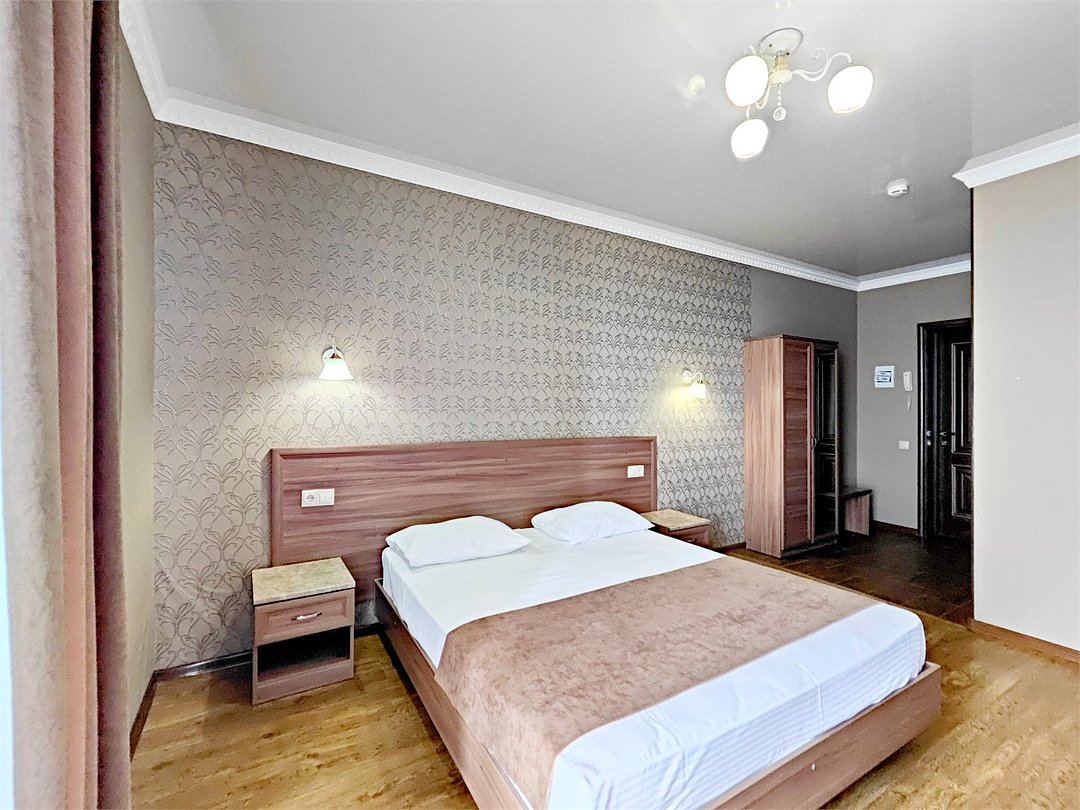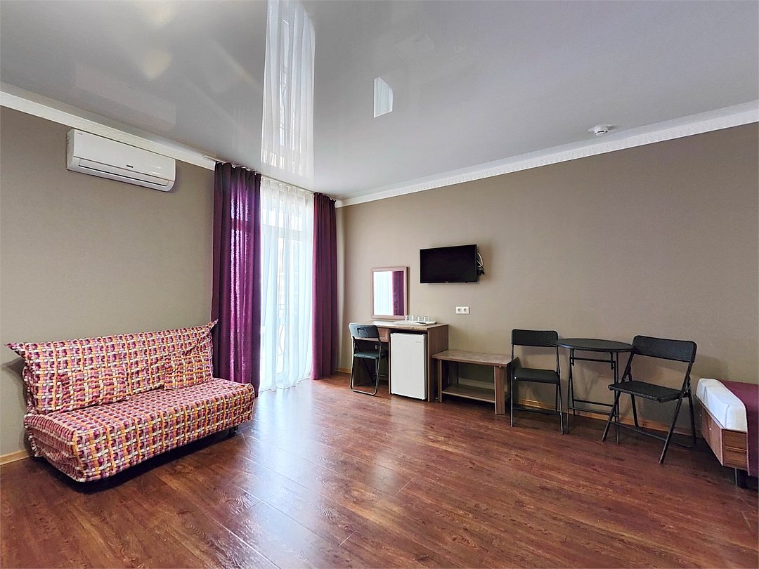 Однокомнатный номер с одной двуспальной кроватью, раздвижным диваном. Просторный ,светлый номерУслуги и удобства