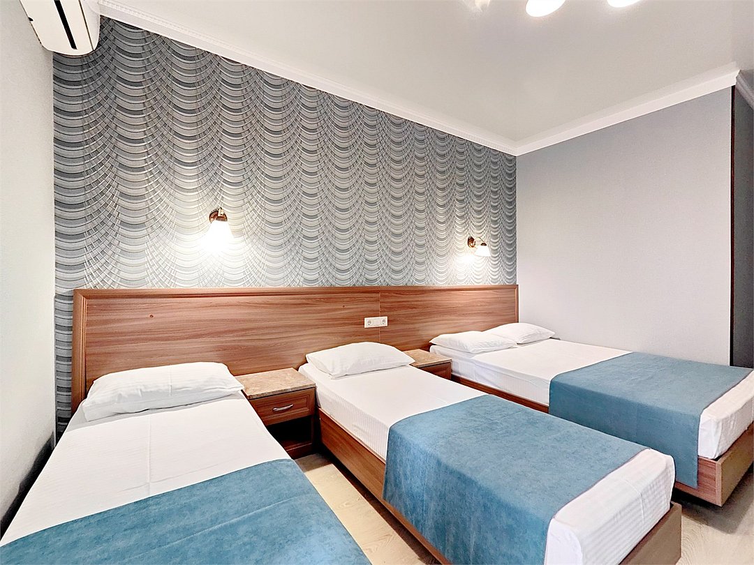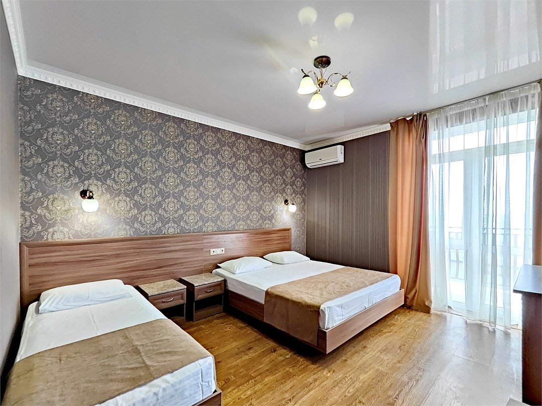 Двуспальная кровать, односпальная кровать,душевая, санузел,балкон с прямым видом на море, сплит системаУслуги и удобства