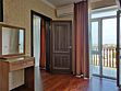 Мебель: двуспальная кровать, 2 тумбочки, туалетный столик, журнальный столик, шкаф платяной, вешалка в прихожей. Удобства: Кондиционер, холодильник, телевизор, сейф, балкон со столом и стульями, комплект гостевых принадлежностей (индивидуальный комплект банных и лицевых полотенец, мыло жидкое, таз, бельевые веревки на балконе, туалетная бум. стаканы). Напольное покрытие плитка.Услуги и удобства