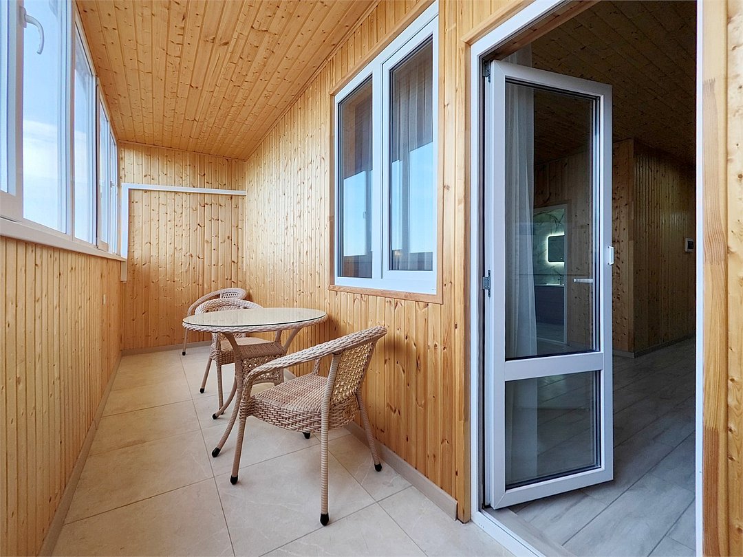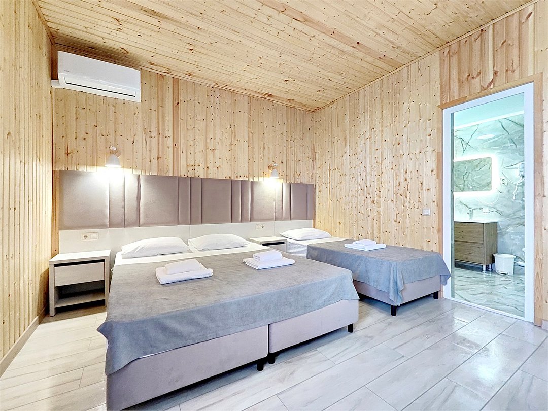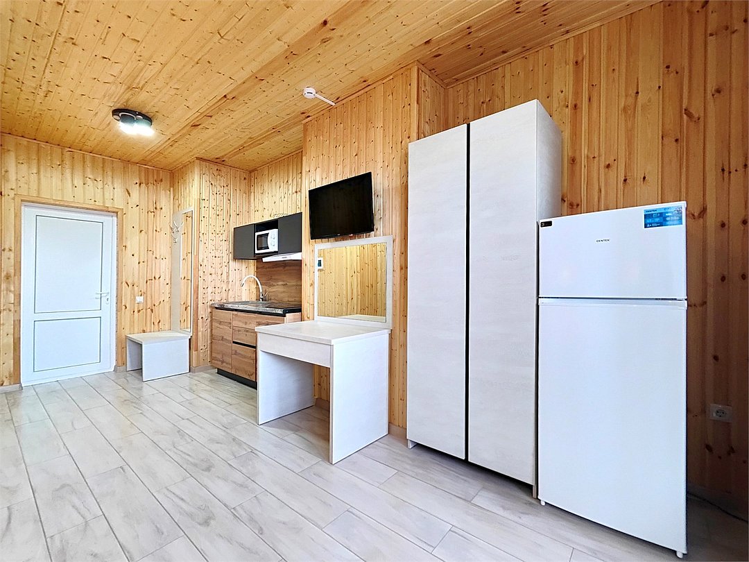 Номера с собственной кухней, просторным балконом. Построенные из экологического материала -дерева.Услуги и удобства