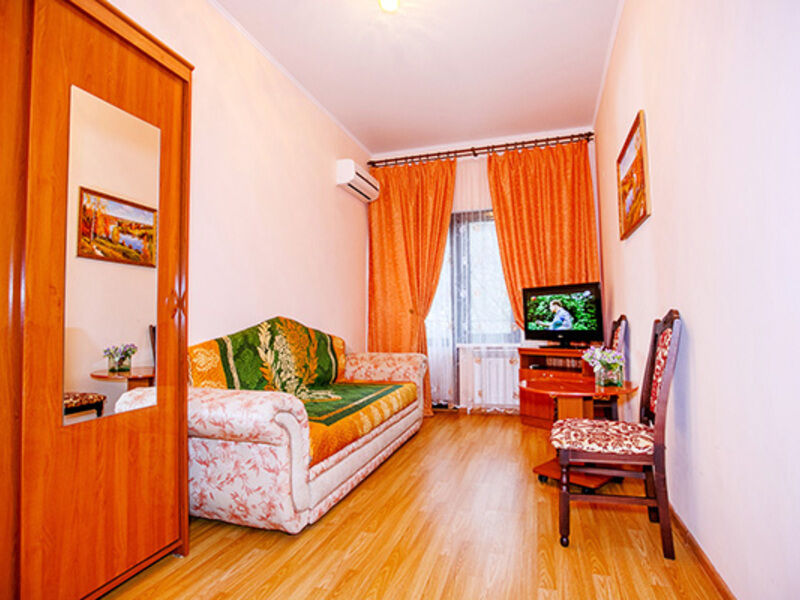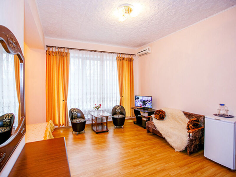 Гостевой дом рассчитан на 65 мест. К услугам гостей предоставляются бесплатные электрочайники и утюги. В номерах и общественных зонах есть wi-fi, а на втором этаже работает лобби-бар. Также к услугам гостей столовая. Среди дополнительных услуг – стирка и глажка, заказ такси и трансфера, а также прокат пляжных зонтов и шезлонгов.