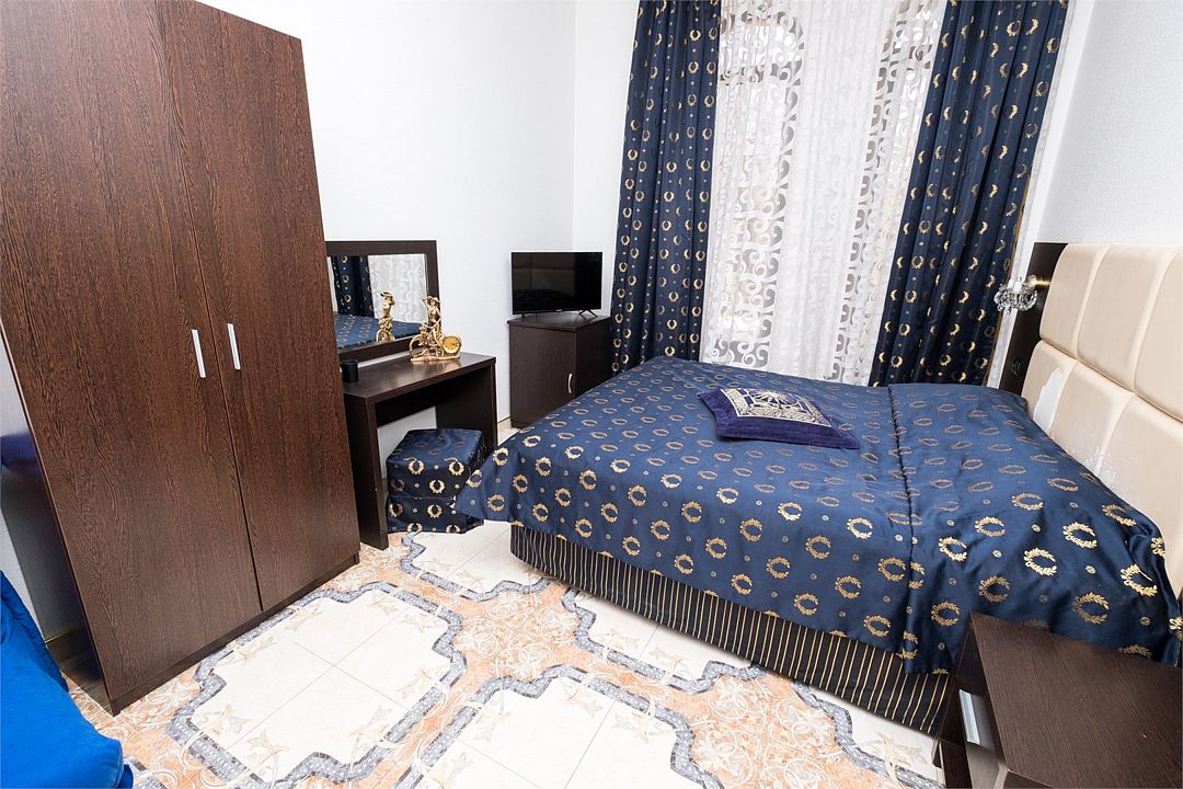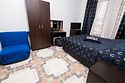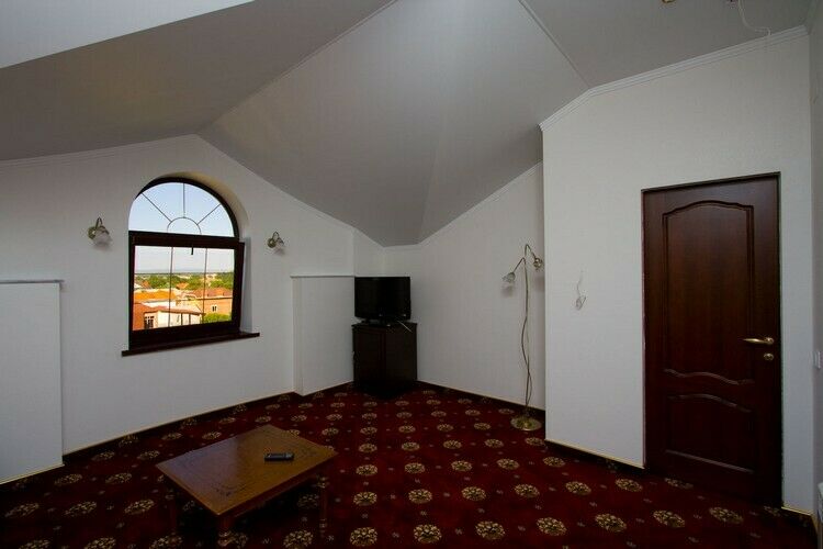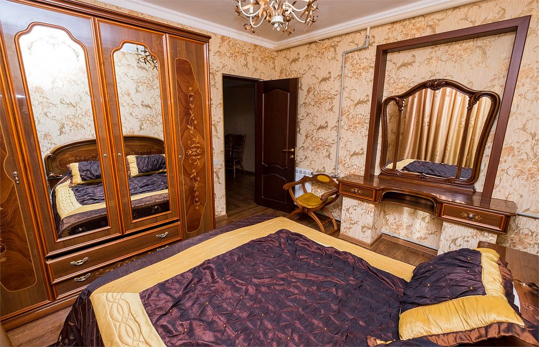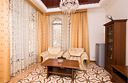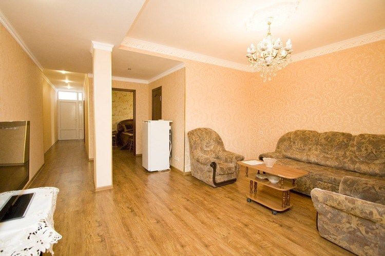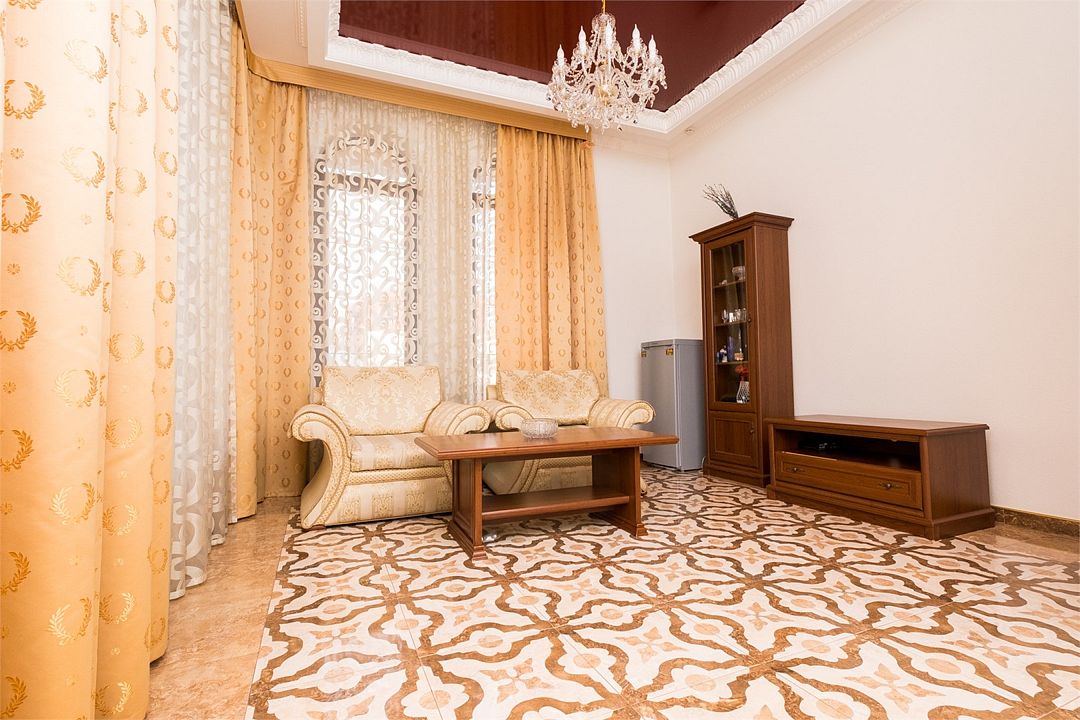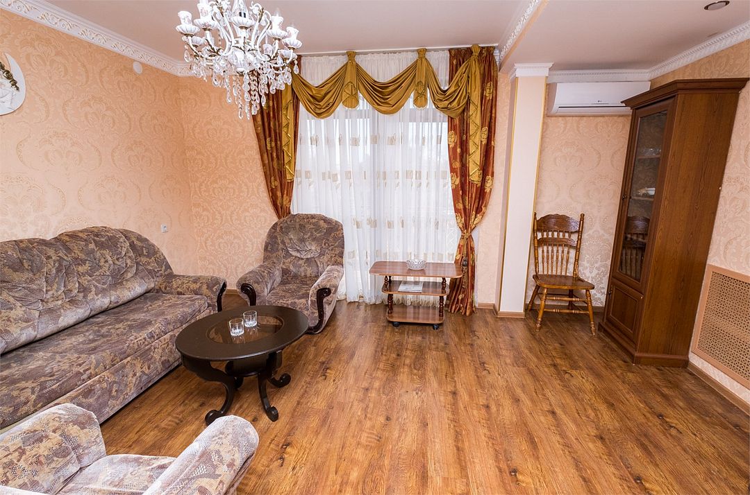 В номере: двуспальная кровать, полутороспальная кровать 2, прикроватные тумбочки, диван, кресла 2, шкаф, стол, журнальный столик, тумба под телевизор 2, туалетный столик, стулья, вешалка, пуфик, зеркало. Оборудование: сплит-система, телевизор, телевизор ЖК, холодильник, телефон, набор посуды, wi-fi. Санузел: с ванной, туалетные принадлежности, халат, тапочки. Дополнительное место: возможность предоставления одного дополнительного места.Услуги и удобства