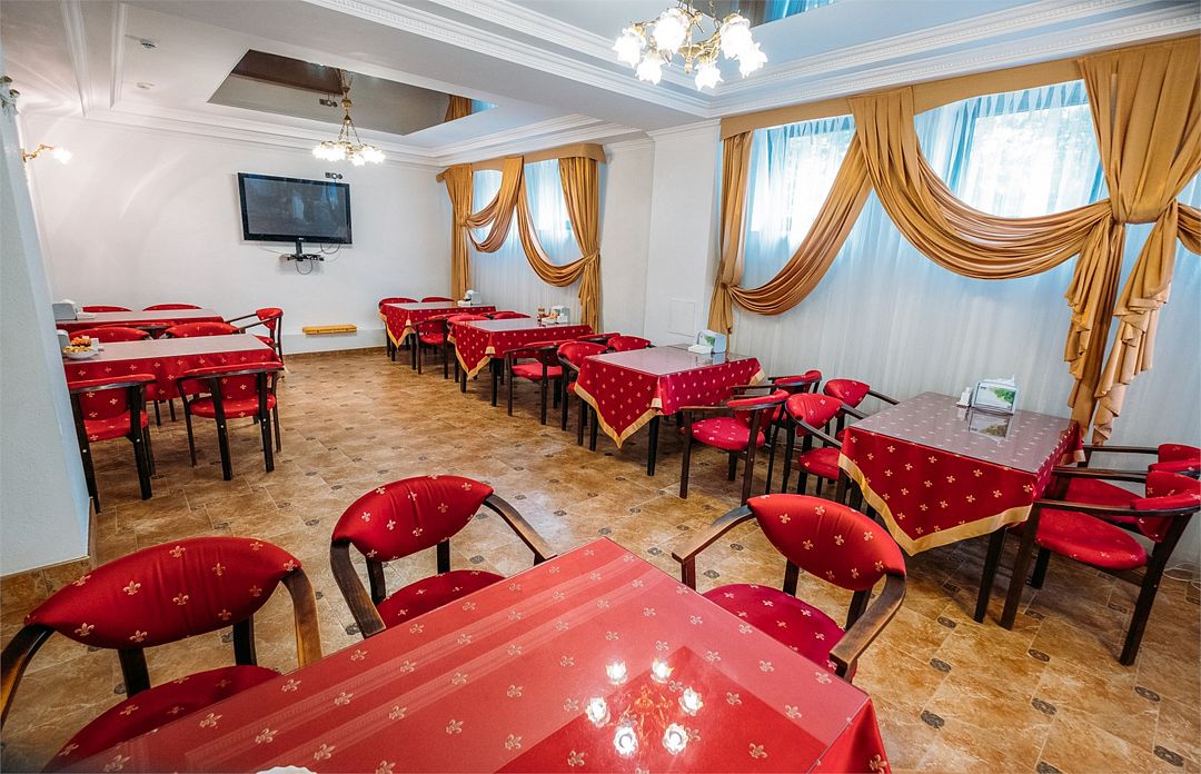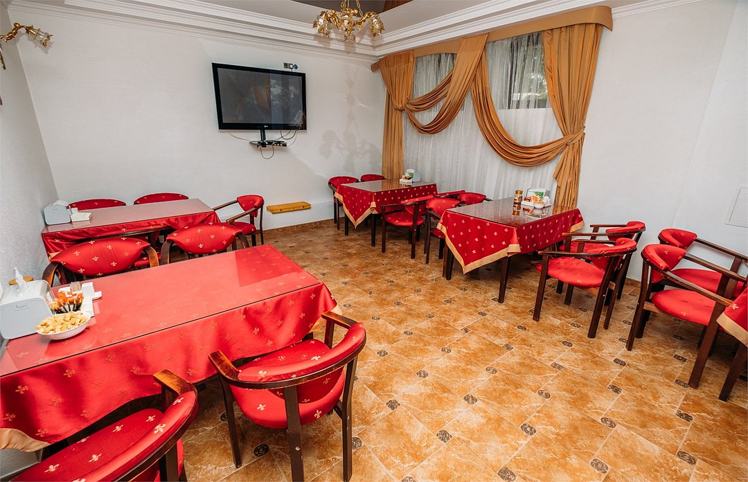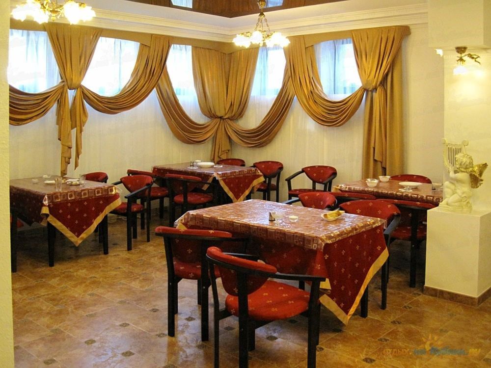 Питаться гостям «Алых парусов» удобнее всего в отельном обеденном зале с европейской кухней. На территории отеля есть также летнее кафе и площадка для барбекю. Досуг гости могут проводить за теннисным столом (он находится в первом корпусе).
