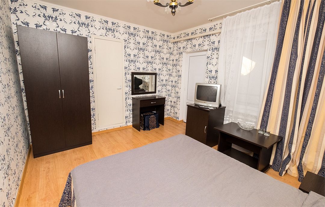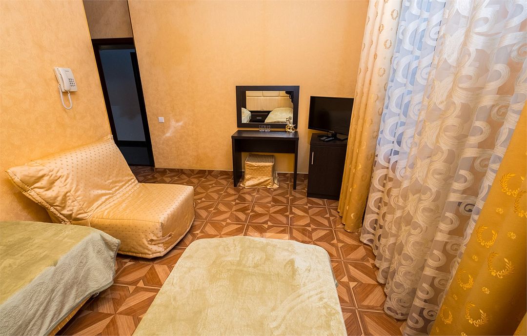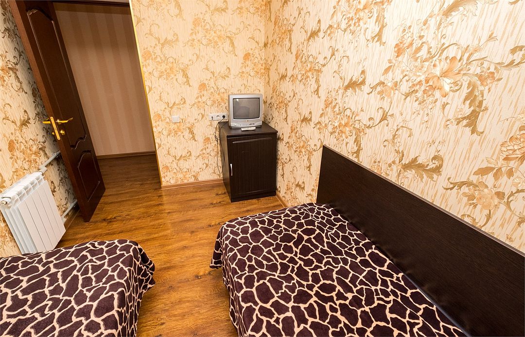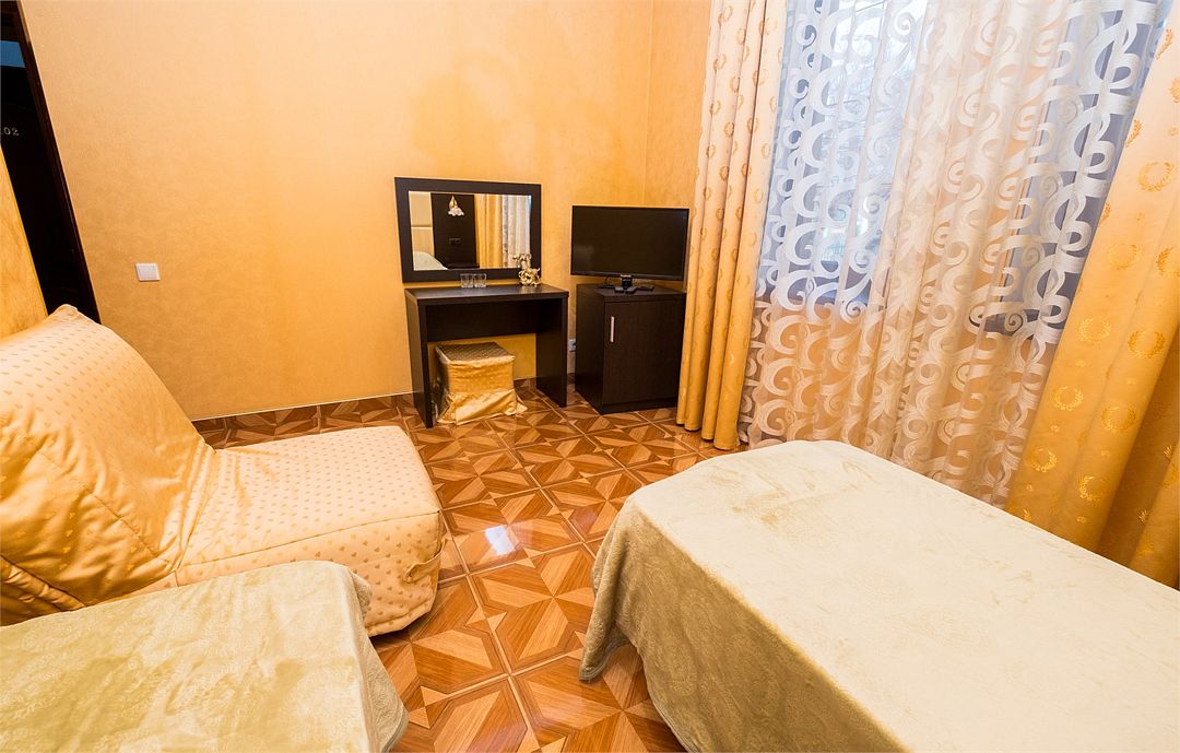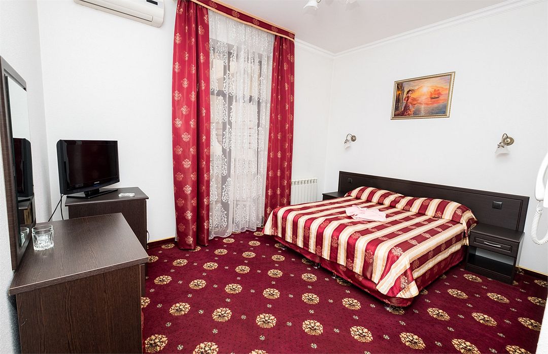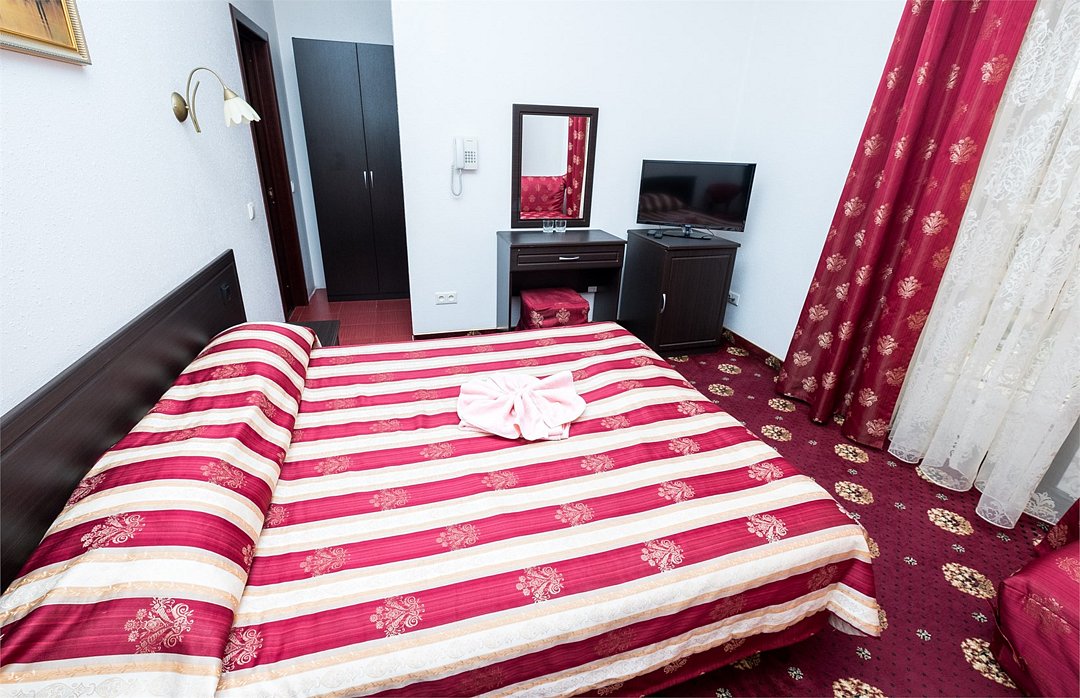 В номере: две односпальные кровати/одна двуспальная кровать, прикроватные тумбочки, шкаф, стол, стулья, зеркало. Оборудование: сплит-система, телевизор, холодильник, wi-fi. Санузел: с душем (поддон), туалетные принадлежности. Дополнительное место: возможность предоставления одного дополнительного места.Услуги и удобства
