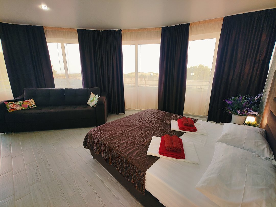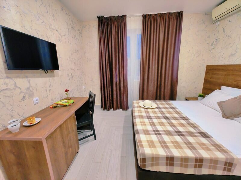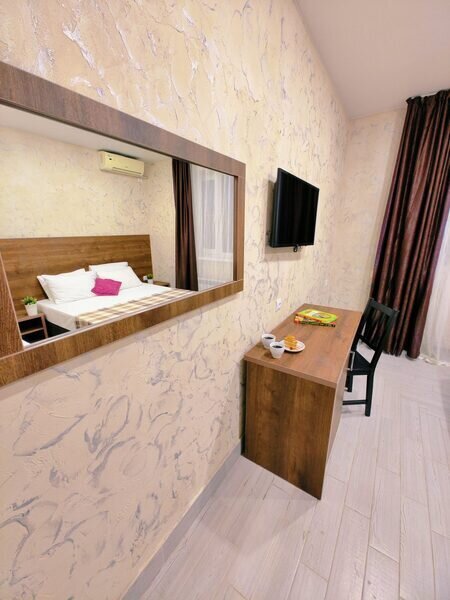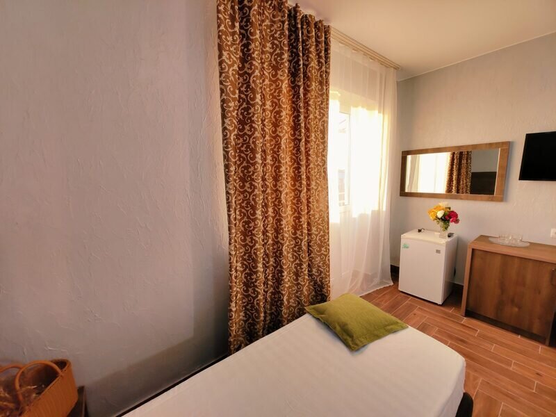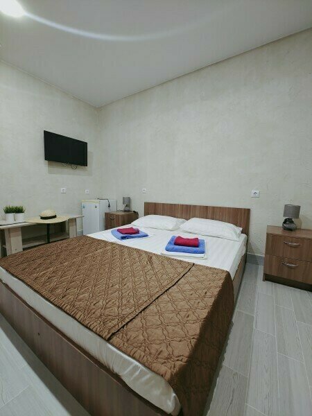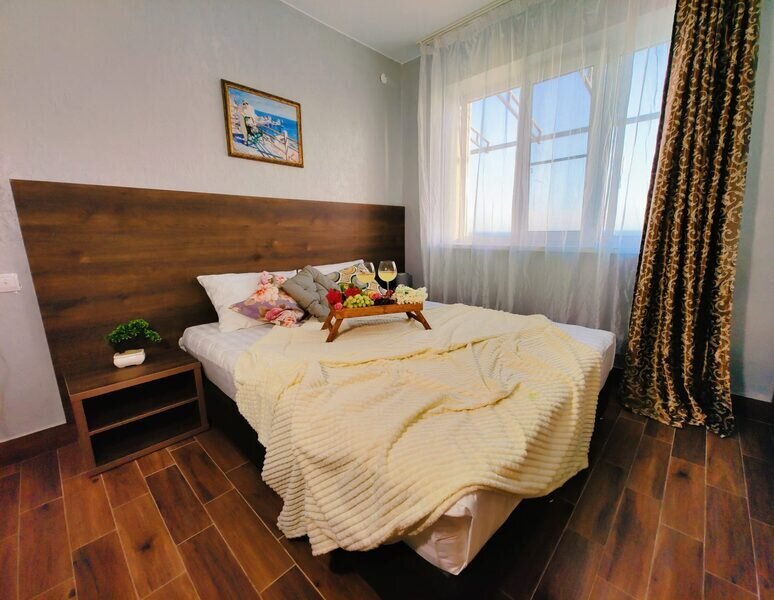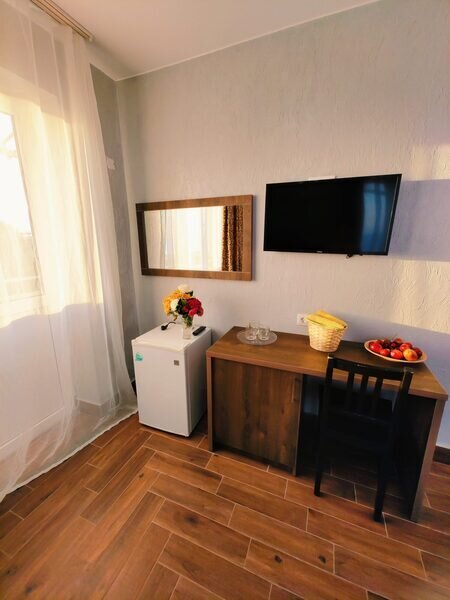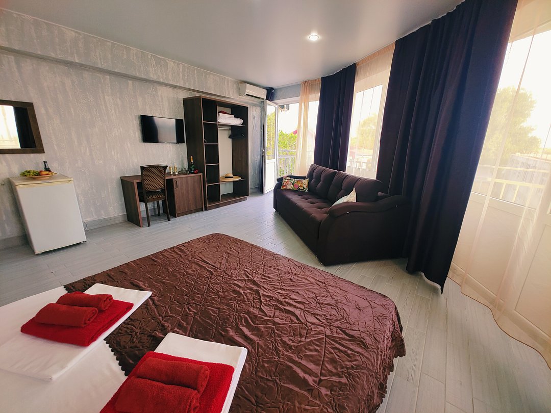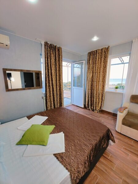 Для вашего комфортного и незабываемого отдыха мы рады предложить прекрасный однокомнатный номер с видом на море. В нем есть все необходимое для вашего отдыха: Двуспальная кровать, прикроватные тумбочки, стол, телевизор, мини-холодильник. Также в номере имеется Wi-Fi, для того чтобы вы всегда оставались на связи. Утром вы можете насладиться чашечкой чая или наблюдать за восходом солнца, а вечером отдохнуть на балконе, наслаждаясь морским бризом и потрясающим закатом. Этот номер станет идеальным выбором для романтического уикенда или незабываемого отпуска.