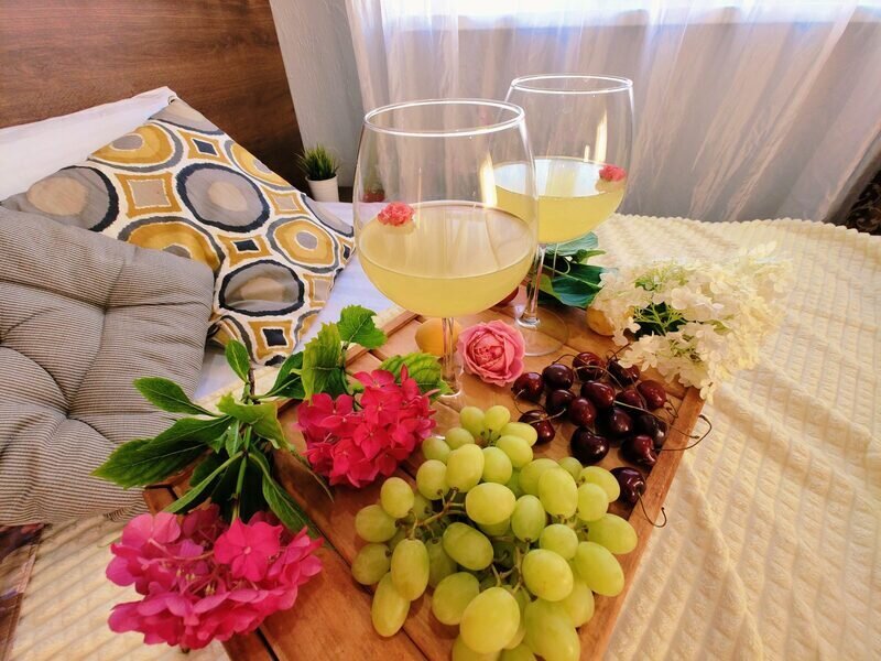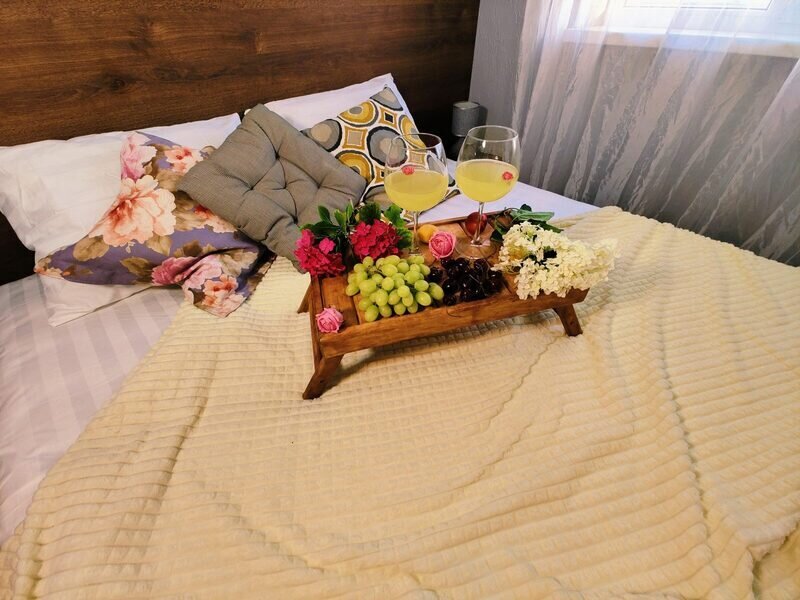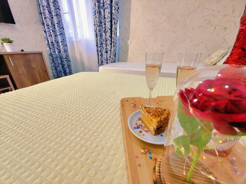 Вас встретят с любовью и заботой, по прибытию в отель гостей ожидает приветственный бокал вина или прохладного шампанского, с легкими закусками. Для детей подается сок и мини-кексы.