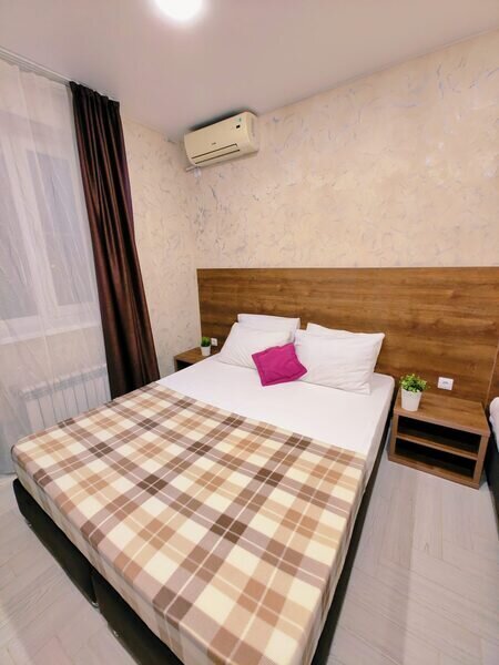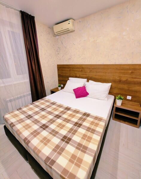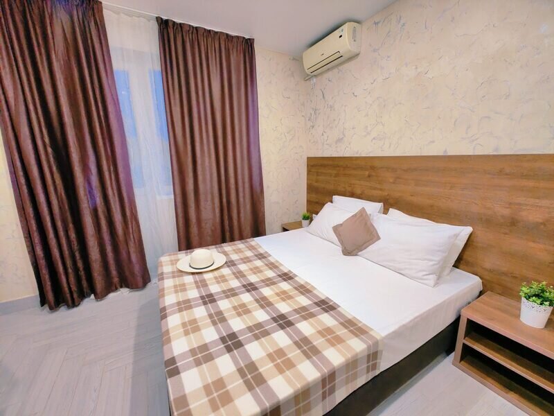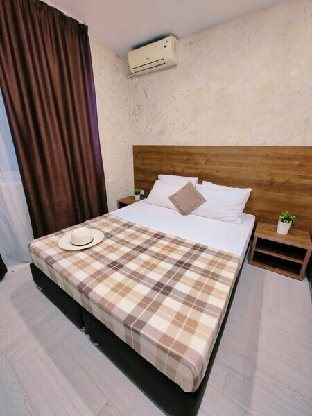 Уютный и светлый двухместный номер. Номер оборудован: двуспальная кровать, телевизор, шкаф для хранения вещей, мини-холодильник и кондиционер, wi-fi, прикроватные тумбочки, стул и стол. Санузел с душем обеспечивает удобство для гостей. Небольшое окно обеспечивает естественное освещение. Номер без балкона.