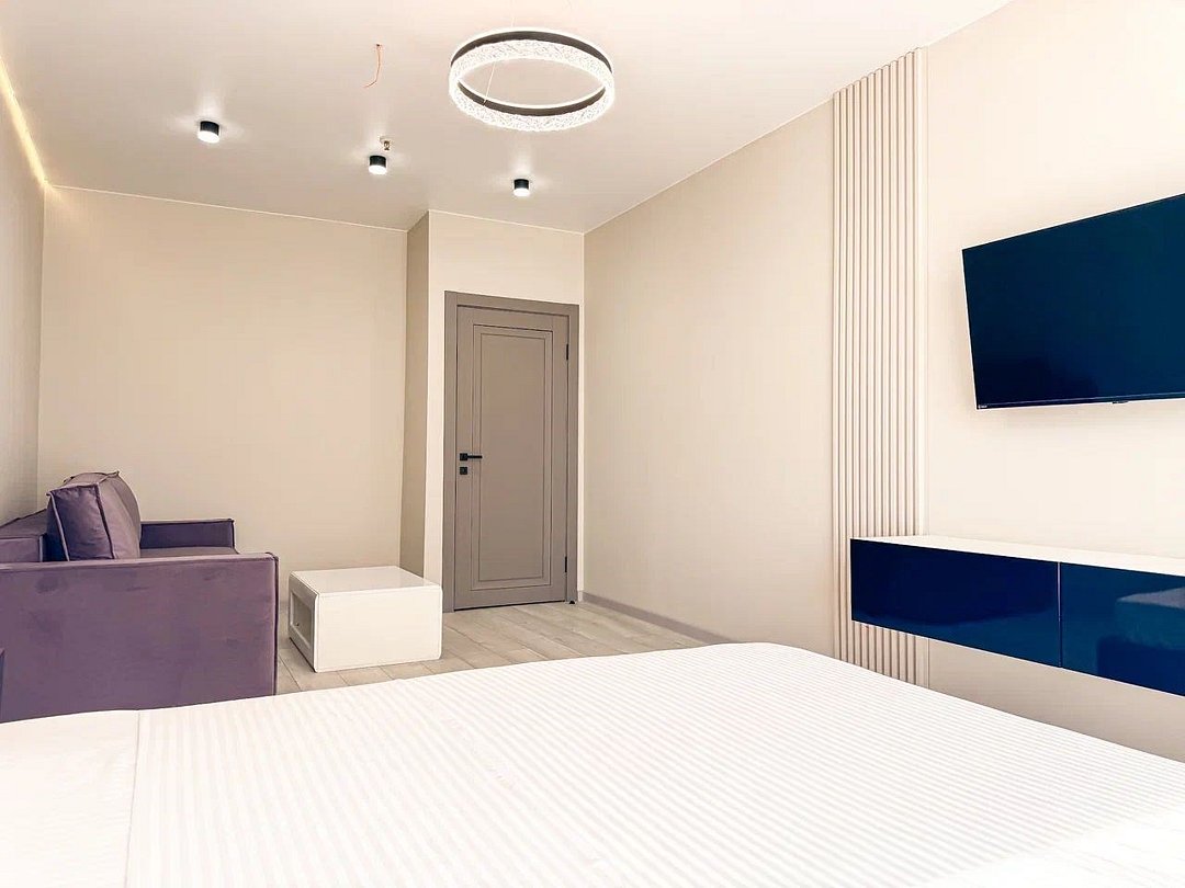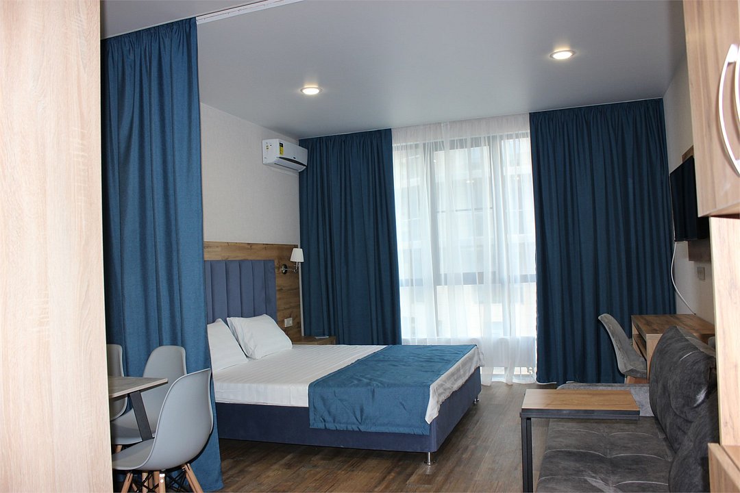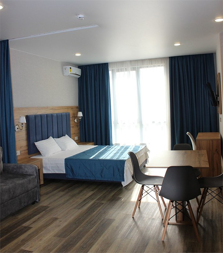 Апартамент находится в отеле 4* "Гранд Сапфир "по адресу: г. Анапа , проезд Голубые дали 9. До песчаного пляжа 100 м. До центра Анапы 10 минут ходьбы. Рестораны, столовые, парк развлечений, торговый центр, аквапарк, рынок находятся в шаговой доступности. Бассейн платный, 1000 рублей за человека.Услуги и удобства