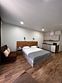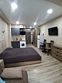 Wi-Fi, банные полотенца, двуспальная кровать, кресла, стулья, шкаф для одежды, вешалки, обеденный стол, зеркало, кухня, чайник, унитаз, раковина, обеденная зона, душ, вид на город, стаканы, столовые приборы, стул, стол, телевизор со Smart TV, холодильный шкаф, кресло-кровать, без питомцевВ гостиничном номере
