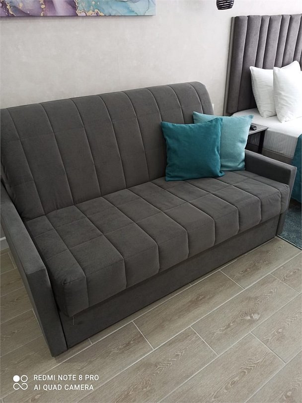 телевизор, Wi-Fi, холодильник, кондиционер, фен, плита для приготовления пищи, микроволновая печь, утюг, душевая кабина, двуспальная кровать, диван, стулья, обеденный стол, зеркало, мебельный гарнитур, кухня, набор посуды, чайник, мягкая мебель, душ, вид на море, вид во двор, туалетные средства, туалет, москитная сетка, телевизор со Smart TV, номер для некурящих, рабочий стол, двуспальный раскладной диван-кровать, мыло, без питомцевВ гостиничном номере