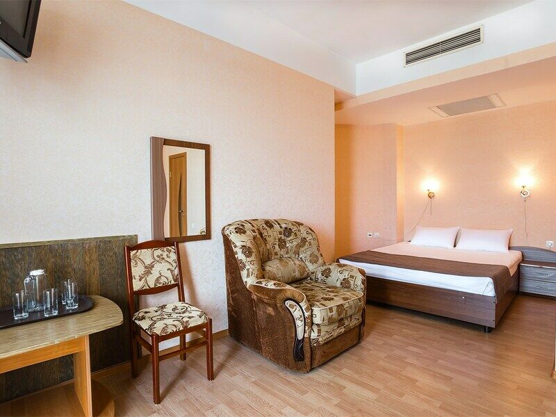 Светлые и уютные номера с балконами оформлены в классическом стиле в тёплых тонах. В каждом номере есть ЖК-телевизор, холодильник, сплит-система, бесплатный Wi-Fi и собственная ванная комната.