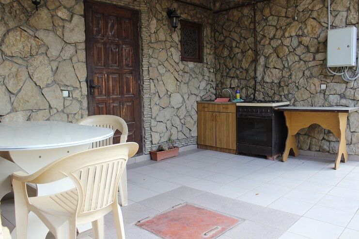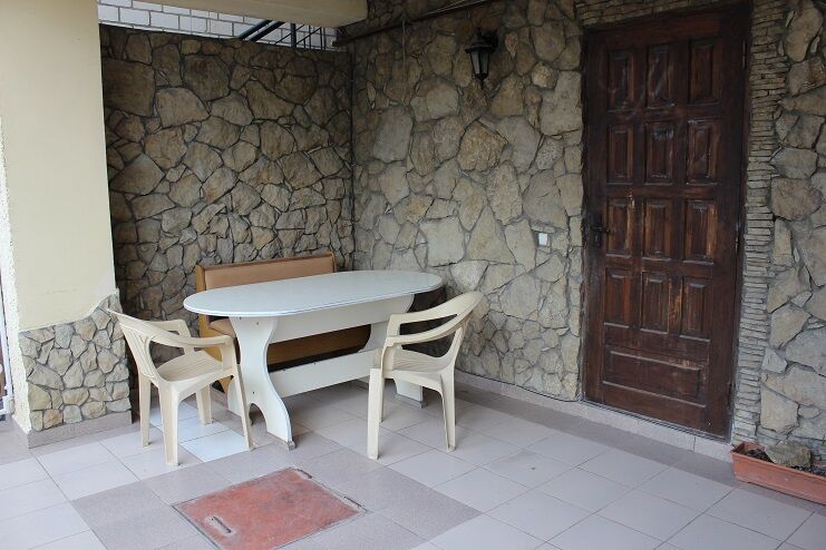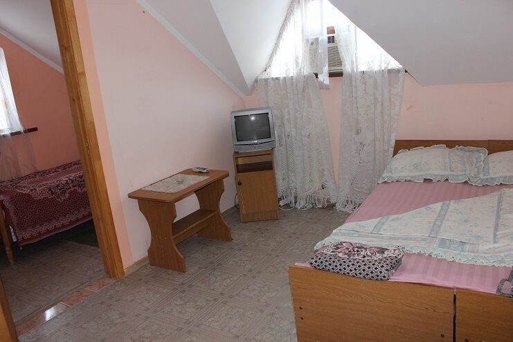 Компактный гостевой дом имеет благоустроенный двор с беседкой для барбекю. Он создан для экономного, спокойного семейного отдыха туристов. На территории пансионата расположена кухня для самостоятельного приготовления еды. Она оснащена газовой плитой, большим столом, стульями и необходимым набором посуды. Для малышей работает игровая площадка в тени деревьев. В трехэтажном коттедже созданы одно- и двухместные стандарты. Они состоят из 1 комнаты и санузла. Недалеко от гостиницы находится центральный рынок, продуктовый магазин и супермаркет «Пятерочка». Для развлечений есть кинотеатр. В шаговой доступности расположен банк, почта и автовокзал.
