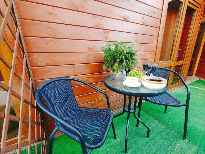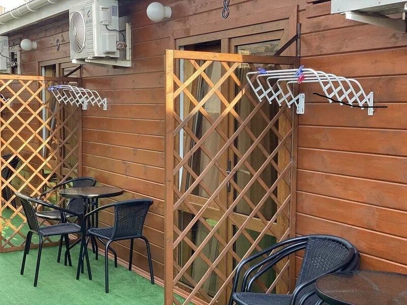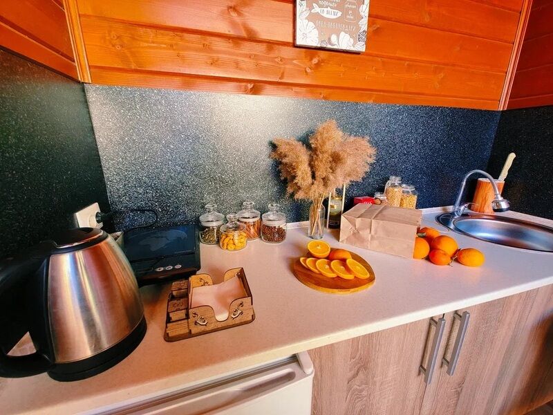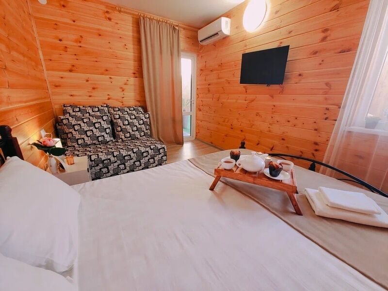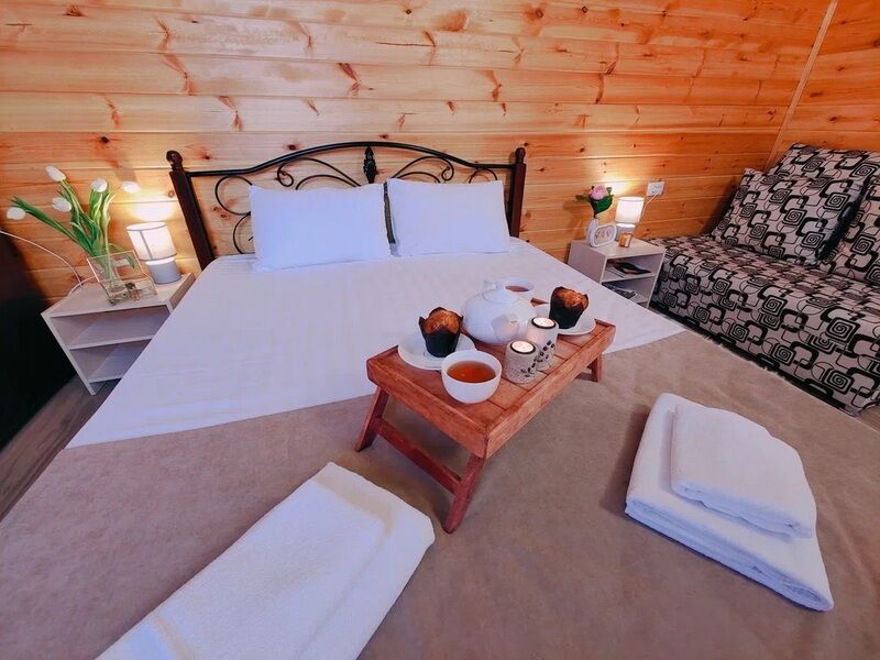 Номерной фонд представлен 25 номерами, 8 из которых оборудованы функциональной кухней. А для более комфортного отдыха предусмотрена общая кухня с СВЧ-печами, блендером, плитами, для самостоятельного приготовления пищи.
