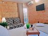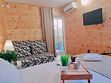 В номере: одна двуспальная кровать, раскладной диван, прикроватные тумбы, прикроватные светильники, ЖК-телевизор, сплит-система, холодильник, вешалка, шкаф.