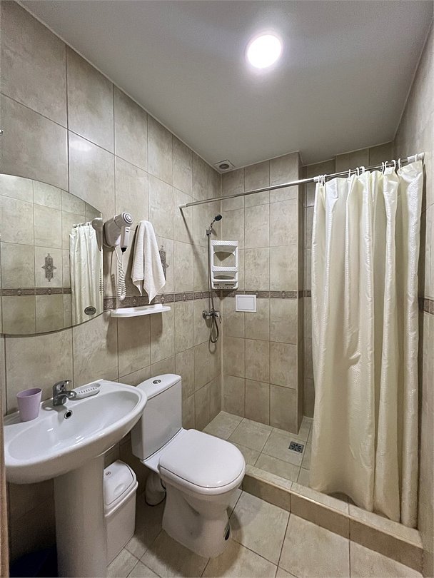 кабельное телевидение, Wi-Fi, интернет, кондиционер, светильник, фен, санузел, банные полотенца, двуспальная кровать, две односпальные кровати, гладильная доска, тумбы, стулья, шкаф для одежды, вешалки, обеденный стол, багажная тумба, зеркало, набор посуды, унитаз, раковина, душ, плиточное покрытие, высокие потолки, стаканы, столовые приборы, тумба, туалетные средства, сплит-система, телевизор с плоским экраном, мини-холодильник, пуфик, рабочий стол, общественный бассейн, уборка номера, услуги прачечной (платно), частный двор, мыло, затемняющая штора, зеркало в полный ростВ гостиничном номере