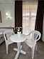 Номер площадью 18 м², размещение 3 человека. Состоит из тамбура, комнаты, санузла и большой уютной террасой 12 м2. Оснащен одной двуспальной кроватью и одной односпальной кроватью, мини холодильник, телевизор, шкаф, прикроватные тумбы, стол, стулья, также различные полочки для удобства наших гостей, комплектом мебели для террасы из искусственного ротанга два кресла, столик и диван. В тамбуре мини прихожая. Есть собственная душевая комната с санузлом, фен, полочки, ершик, мыло, полотенца.Услуги и удобства