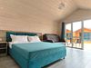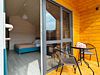 Домик оснащен: двуспальная кровать, прикроватные тумбочки, шкаф, зеркало, вешалка, мини-холодильник, телевизор, сплит-система.