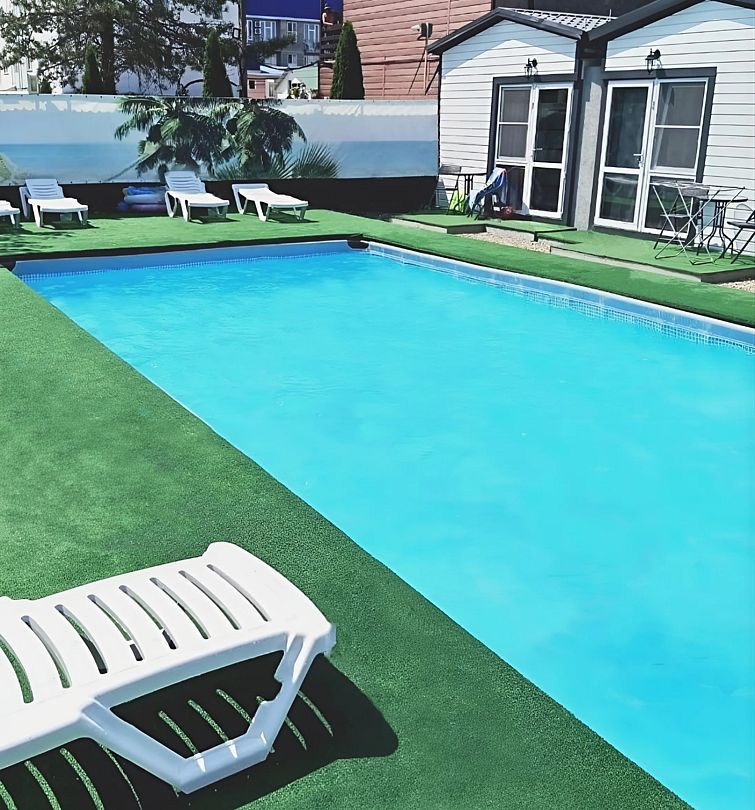 Просторный бассейн на базе отдыха – это отличная возможность проводить время у воды в любой день и в любое время суток, не покидая территории комплекса.