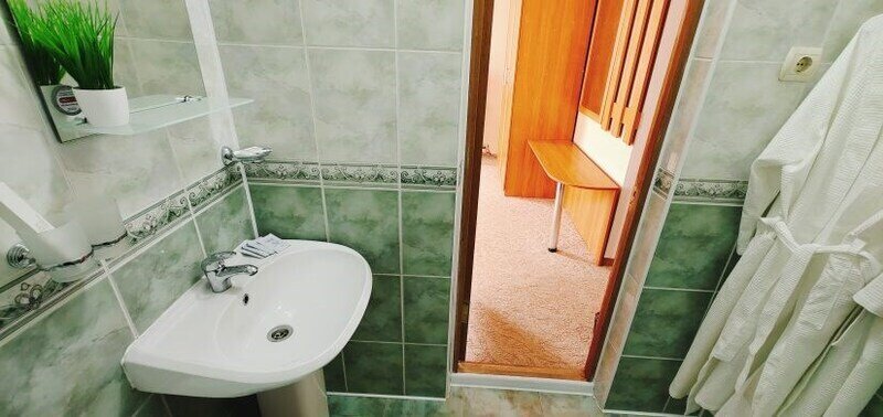 НедостаткиОсвещение в туалете мне показалось недостаточным. Нет полок в ванной: некуда положить фен и расческу. Во время нашего заселения не было администратора, его обязанности выполнял охранник.