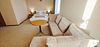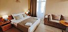 Номер оснащен: большая двуспальная кровать и односпальная кровать или кресло-кровать, прикроватные тумбочки, журнальный столик, шкаф, зеркало, вешалка, ТВ, мини-холодильник, сплит-система.