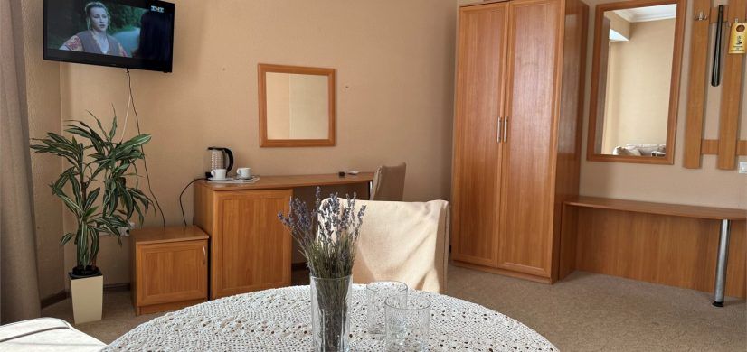 Если вы хотите сделать ваш отдых не только приятным, но и полезным, то администрация может за небольшую плату приобрести для вас курсовки в ближайший санаторий «Ди Луч», в котором работают отличные профессионалы в сфере медицины. Вам обязательно понравится обстановка в номере, ведь всё сделано так, чтобы вы чувствовали себя как дома.
