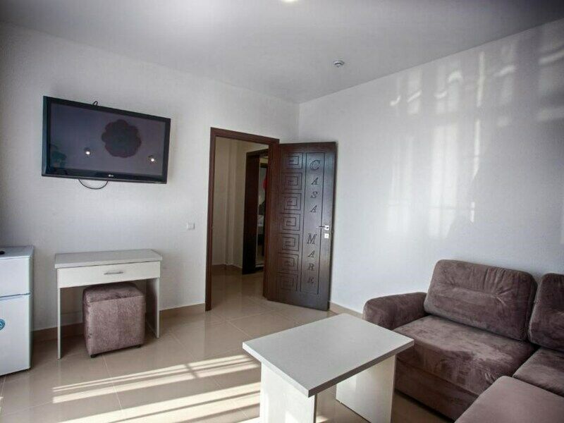 Путешествие с семьейПревосходно!Отличный отдых в casa mare. Фото соответствуют действительности. Все новое, чистое, удобное. В номере: отличные кровати с тумбами, вообще много мебели(прихожая, столик, стол с зеркалом и пуфиком, на балконе стол и стулья). Также есть холодильник, телевизор, кондиционер, посуда, фен. Отличная продуманная система, когда уходишь- все выключается кроме холодильника. Уборка через день(можно чаще- договориться несложно). Полотенца и белье белоснежные, также меняют. Отличный wi-fi (хватало до моря😊). Реально до моря 3 минуты. При гостинице свое кафе с мангалом (во дворе) и столовая внутри. Но можно выбрать любое другое- рядом есть где поесть, цены везде дешевле, чем в Саратове. Пляж рядом чистый, море тоже. Было с чем сравнить- не ищите лучше, если вдруг много народа- просто пройдите 100 м . В общем - идеально!