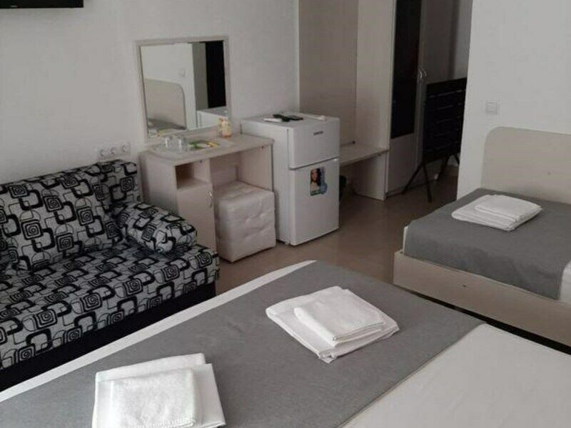 авг. 2020 г.понравилосьбыли в трехместном номере , хорошо все , единственный минус- нужен конечно чайник в номере- с третьего этажа вот лень ходить за чаем вниз, хоть убейте..потому что ну не одну же чашку ты пьешь))А так- все хорошо, раз в три дня уборка, туалетная бумага своя,внизу ужинали, столики, кухня( там вся посуда есть, плита,вода, чайник).Милые хозяева , все уютно, как дома.Есть батут для деток, кран для ног при входе- удобно!! Рядом куча столовок, магазин, аптека.Пляж буквально в 200 метрах- очень близко- если оптом лежак брать, то по 150 рублей.В общем, рекомендуем!!