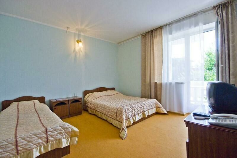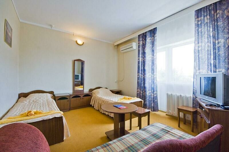 ДостоинстваПосетили мы этот пансионат с детьми в июле 2018. Понравилось абсолютно всё, номер был очень удобным, спальных мест нам хватило, у двух комнат был балкон. Не было жарко, так как был кондиционер, номер был отремонтированный, но ковролин не первый свежести. Номер был чистым, на телевизоре работают шесть каналов, имелся небольшой холодильник. На первом этаже был кулер. Уборку проводили ежедневно, регулярно меняли постельное белье и полотенца. Понравилось питание, оно было организовано по системе шведский стол, выбор есть. Было два бассейна, для детей и взрослых, вода в них была тёплая. Имелся бар, анимация для детей, различные развлечения для детей.