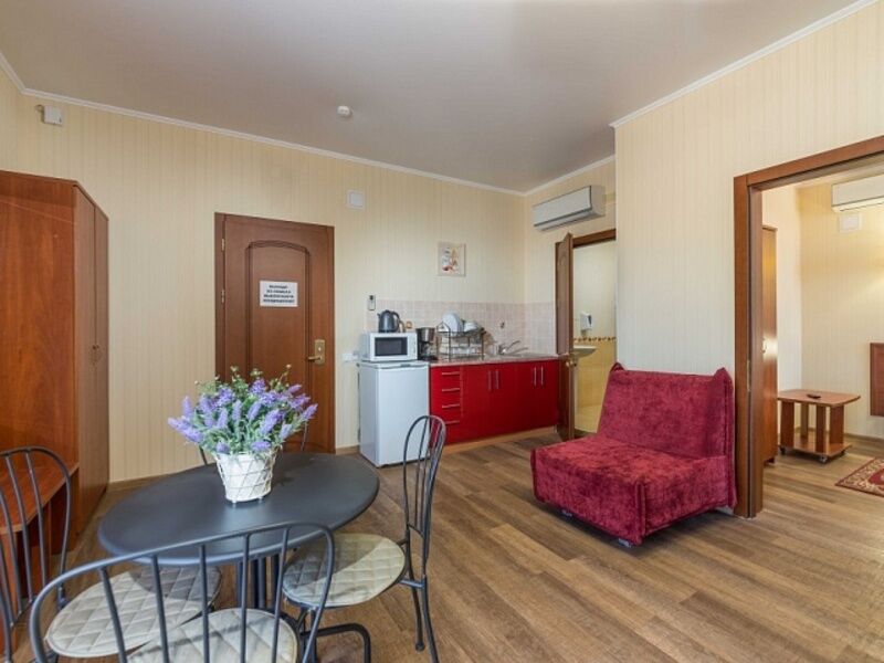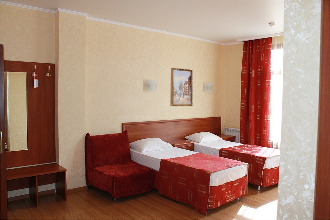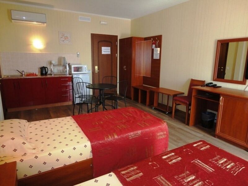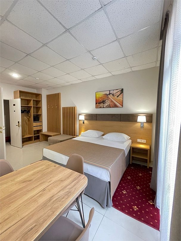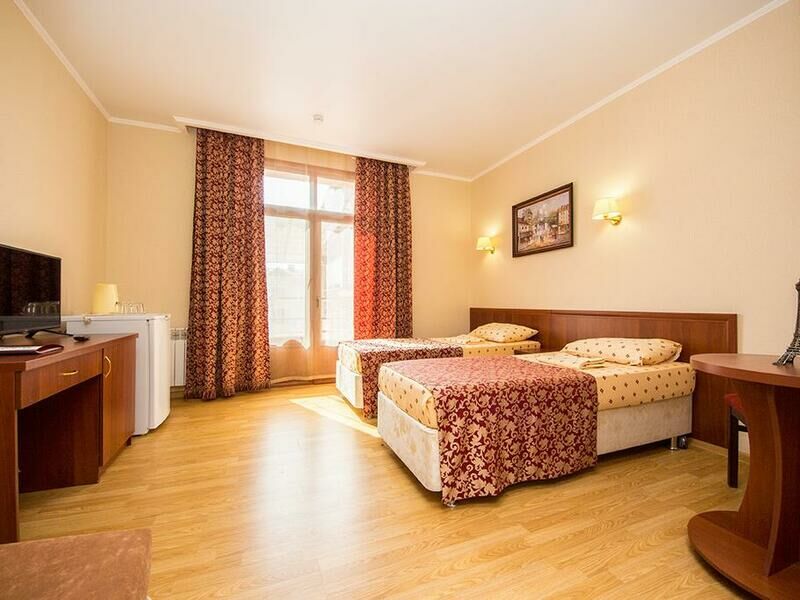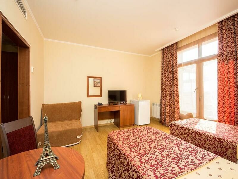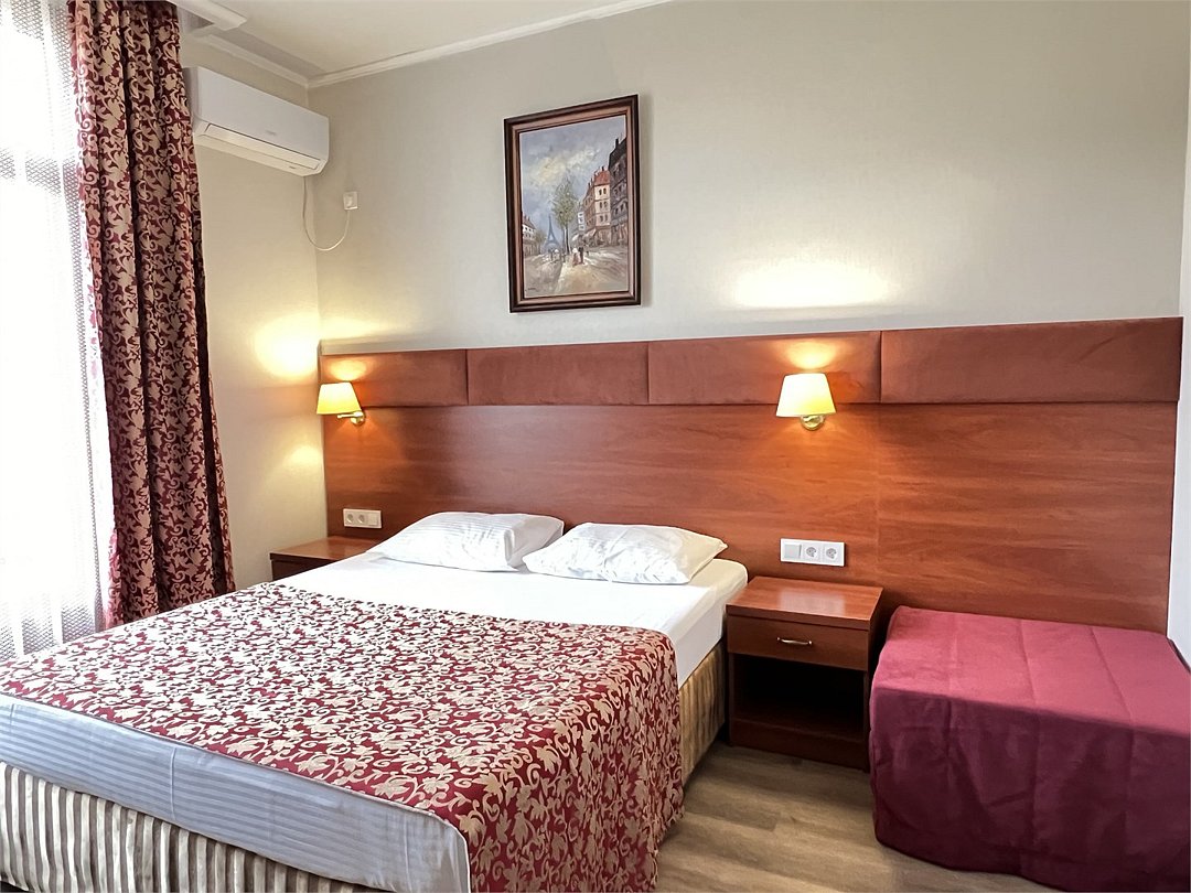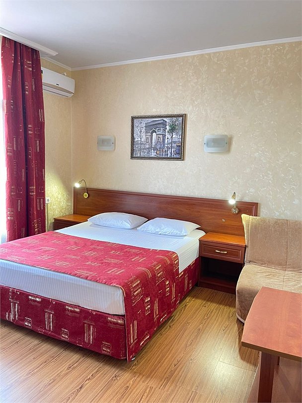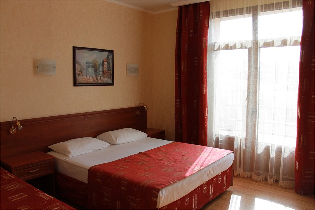 Современное четырехэтажное здание отеля с лифтом способно единовременно разместить до 120 человек. Небольшой номерной фонд включает номера разного уровня комфорта, оформленные в классическом стиле. Каждый из них оснащен современной техникой – телевизором, кондиционером, феном, холодильником, имеются собственные ванные комнаты с душем, в некоторых – предусмотрены французские балконы, в номерах, рассчитанных на семьи или большие компании есть оборудованная кухня. Гостям доступен беспроводной интернет на всей территории отеля, услуги прачечной, гладильной, трансфер. При необходимости в номер можно дополнительно установить детскую кроватку-манеж или взять в аренду коляску.