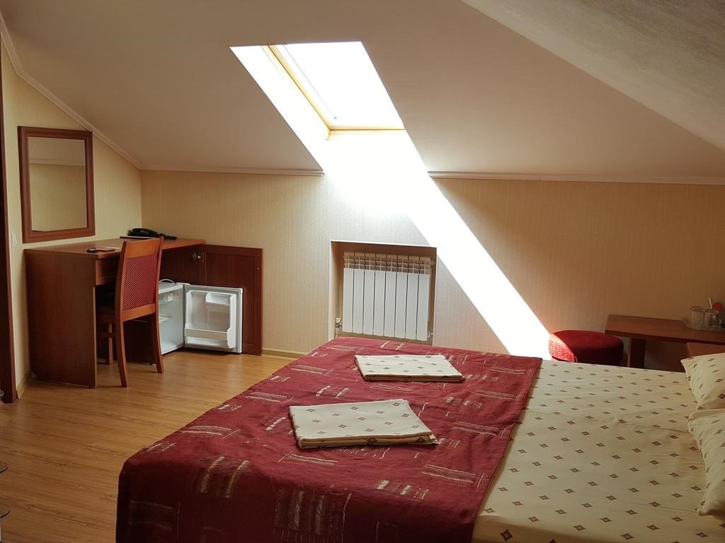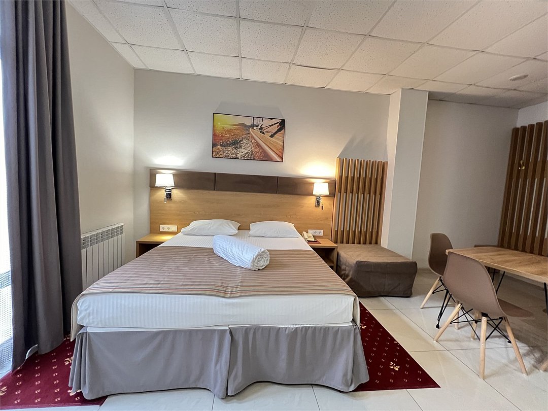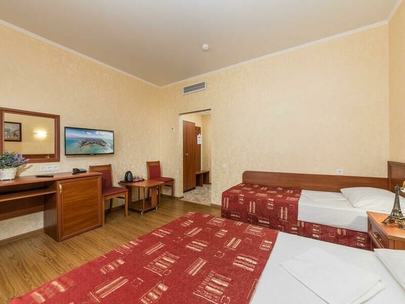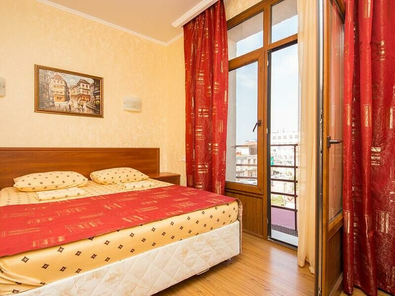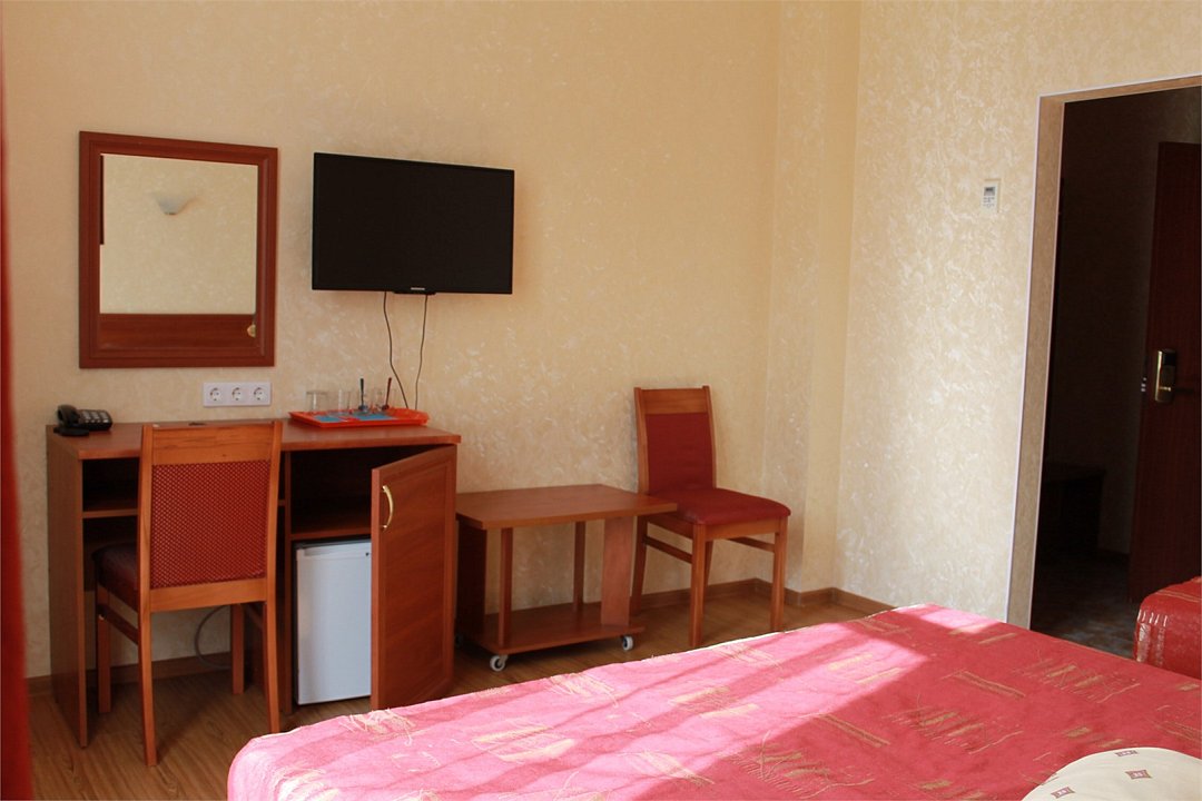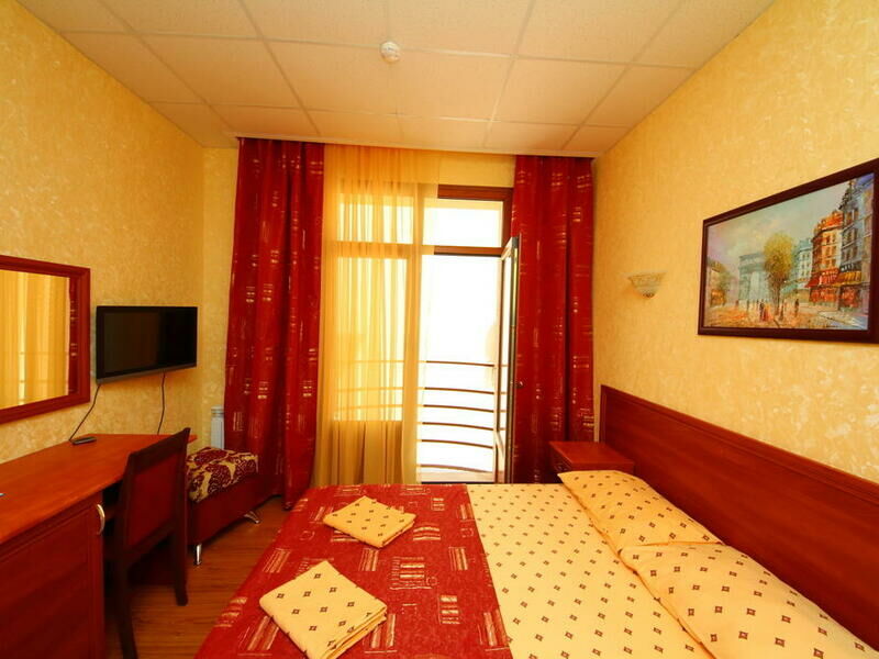 Гостиница имеет немало преимуществ - находится недалеко от моря и основных точек типа автовокзала , винных подвалов , столовых и тд . В гостинице прекрасный персонал , который правда старается помочь. Проводится уборка ( влажная , чуть ли не каждый день , смена полотенец , белья). Есть лифт !! С чемоданом или просто усталый с пляжа идёшь - почему бы не прокатиться :)