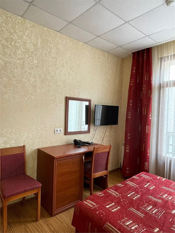 Уютный номер с французским балконом. Все номера оборудованы электронными ключами, установлены датчики дыма и новейшая пожарная сигнализация. Смена белья и полотенец производится на 4 день проживания. На этаже гладильная доска, утюг, кулер с горячей и холодной водой в начале коридора на каждом этаже. Размещение номеров на 2-4 этажах, на верхние этажи можно подняться на лифте.Услуги и удобства