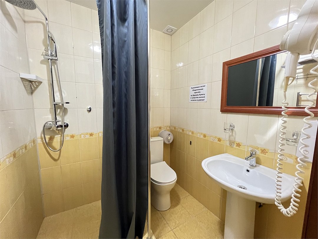 кабельное телевидение, Wi-Fi, светильник, электронные замки, банные полотенца, раковина, душ, кулер на этаже, туалетные средства, туалет, мини-холодильник, фанкойл, гигиенический душ, мыло, можно с питомцамиВ гостиничном номере