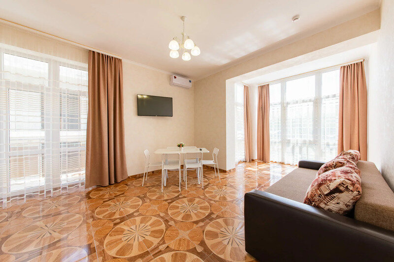 Интерьер гостевого дома оформлен в классическом стиле, с доминирующей светлой цветовой гаммой, создавая теплую и уютную атмосферу. Апартаменты оборудованы всей необходимой мебелью и техникой, в некоторых из них также имеется балкон и собственная ванная комната. Для удобства гостей предоставляется бесплатный интернет. Прием и регистрация гостей осуществляются круглосуточно, а персонал готов предоставить информацию о туристических достопримечательностях и варианты проведения досуга.