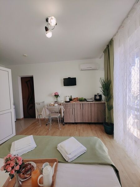 В номере имеются все удобства: холодильник, телевизор, санузел. Кондиционер есть в каждой комнате.В номере есть кухня для самостоятельного приготовления.