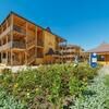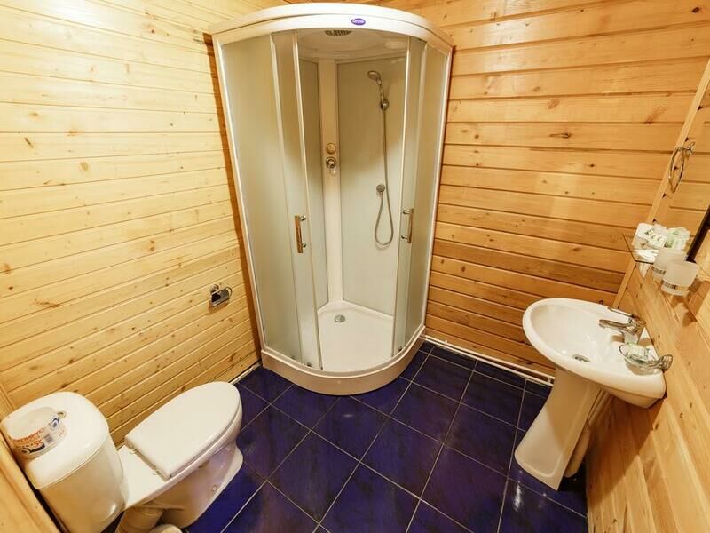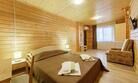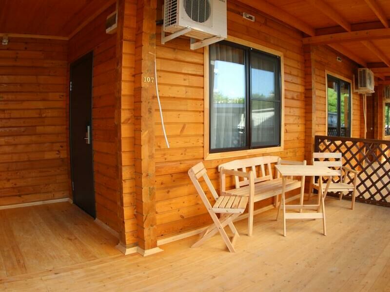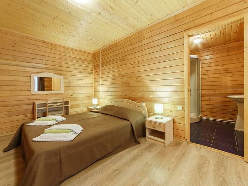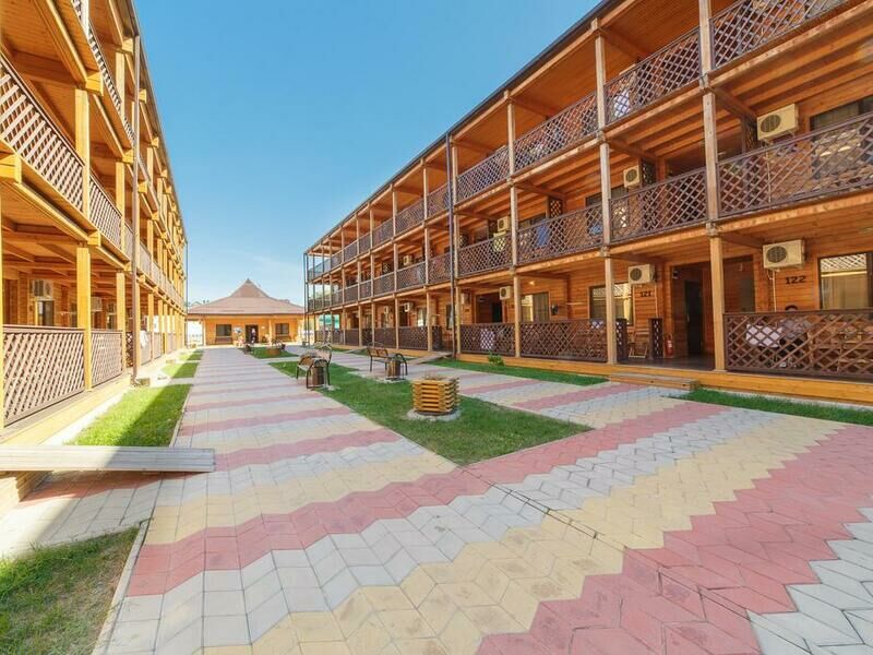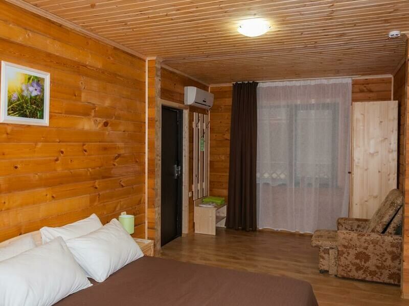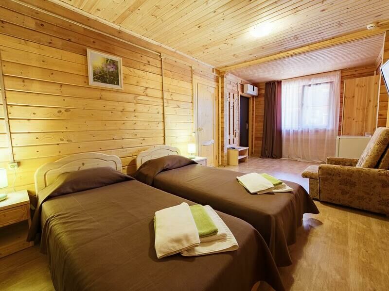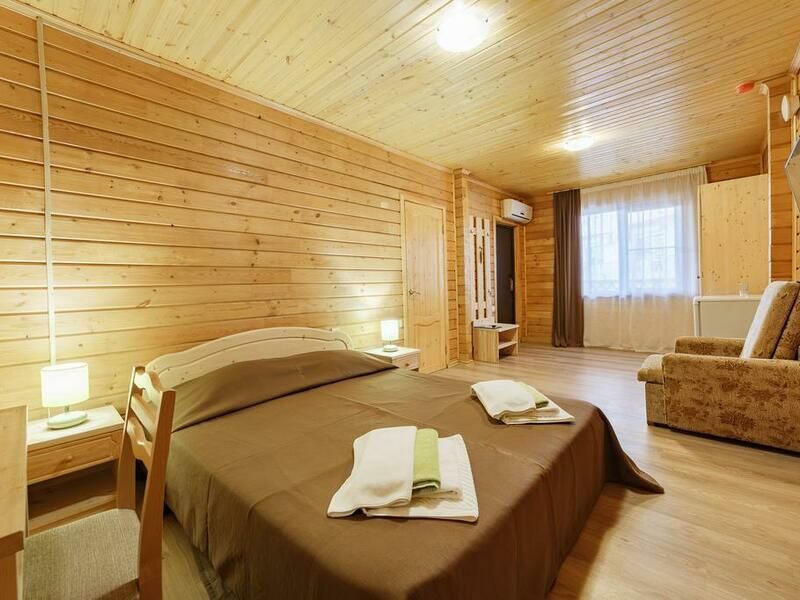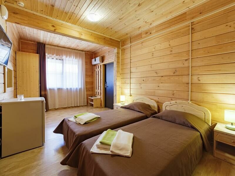Пансионат включает два трехэтажных корпуса из дерева. Номера здесь предлагаются только из категории Стандарт, но они оснащены всем необходимым для комфортного проживания гостей. В них есть удобные кровати, бытовая техника и свои ванные комнаты. Кроме того, в комплексе имеется столовая, в которой отдыхающие могут угоститься вкусными блюдами. В стоимость отдыха входит трехразовый прием пищи, пользование двумя открытыми аква-комплексами, детский клуб и свой оборудованный пляж, а также бесплатный беспроводной интернет.