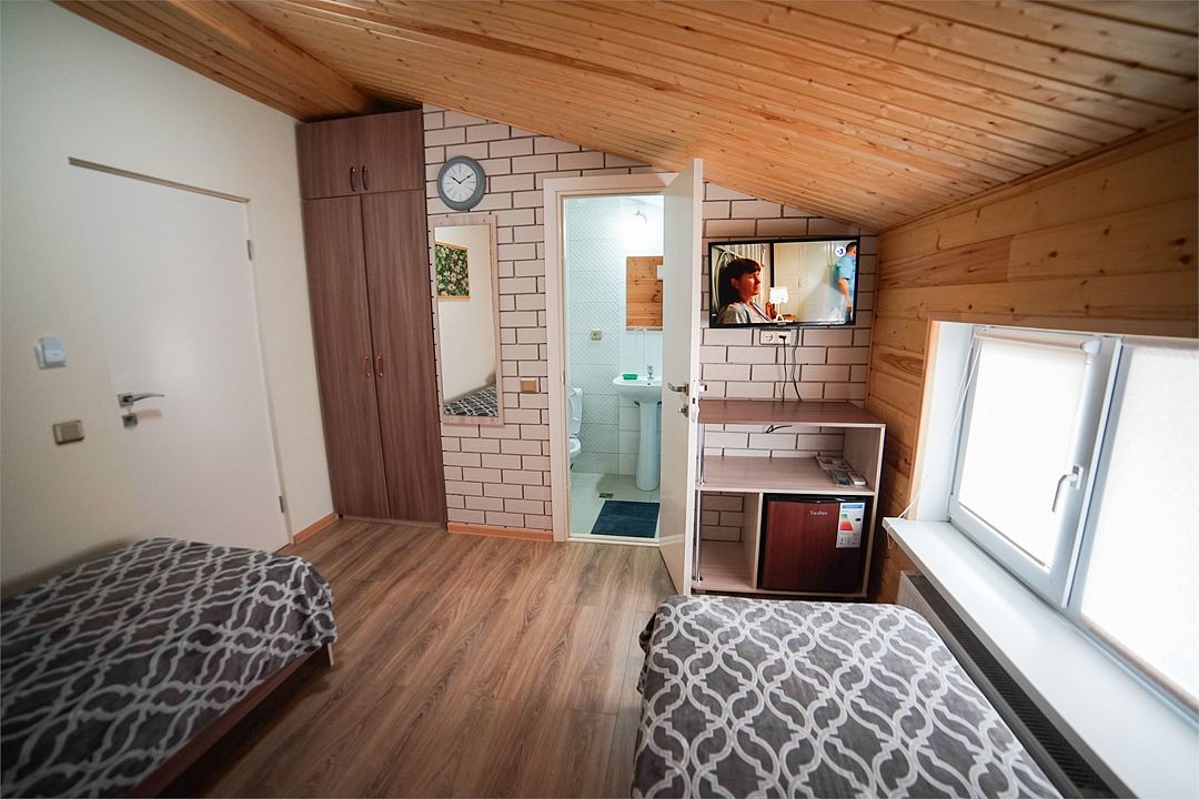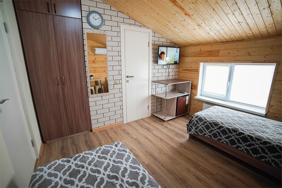 Две кровати 800х1900, плоский телевизор, холодильник.Услуги и удобства